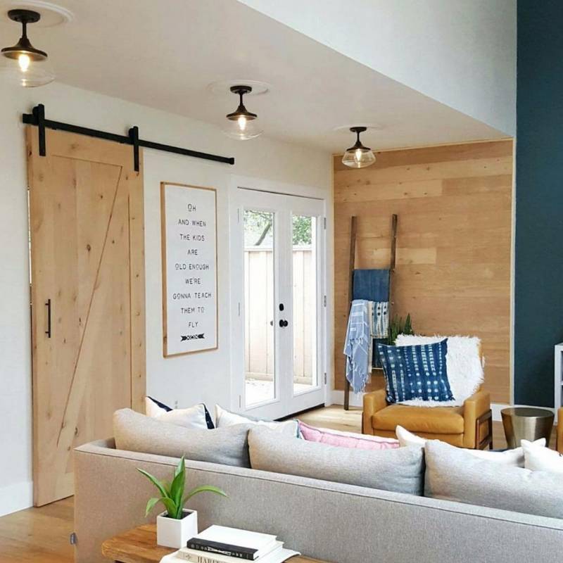 5. The Vintage Industrial Ceiling Light Fills the Living Room with Luminous Glamour