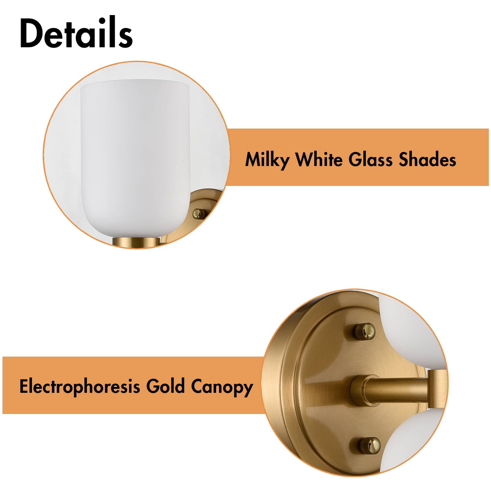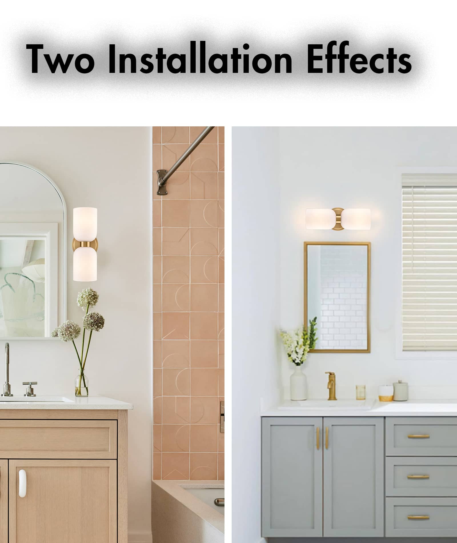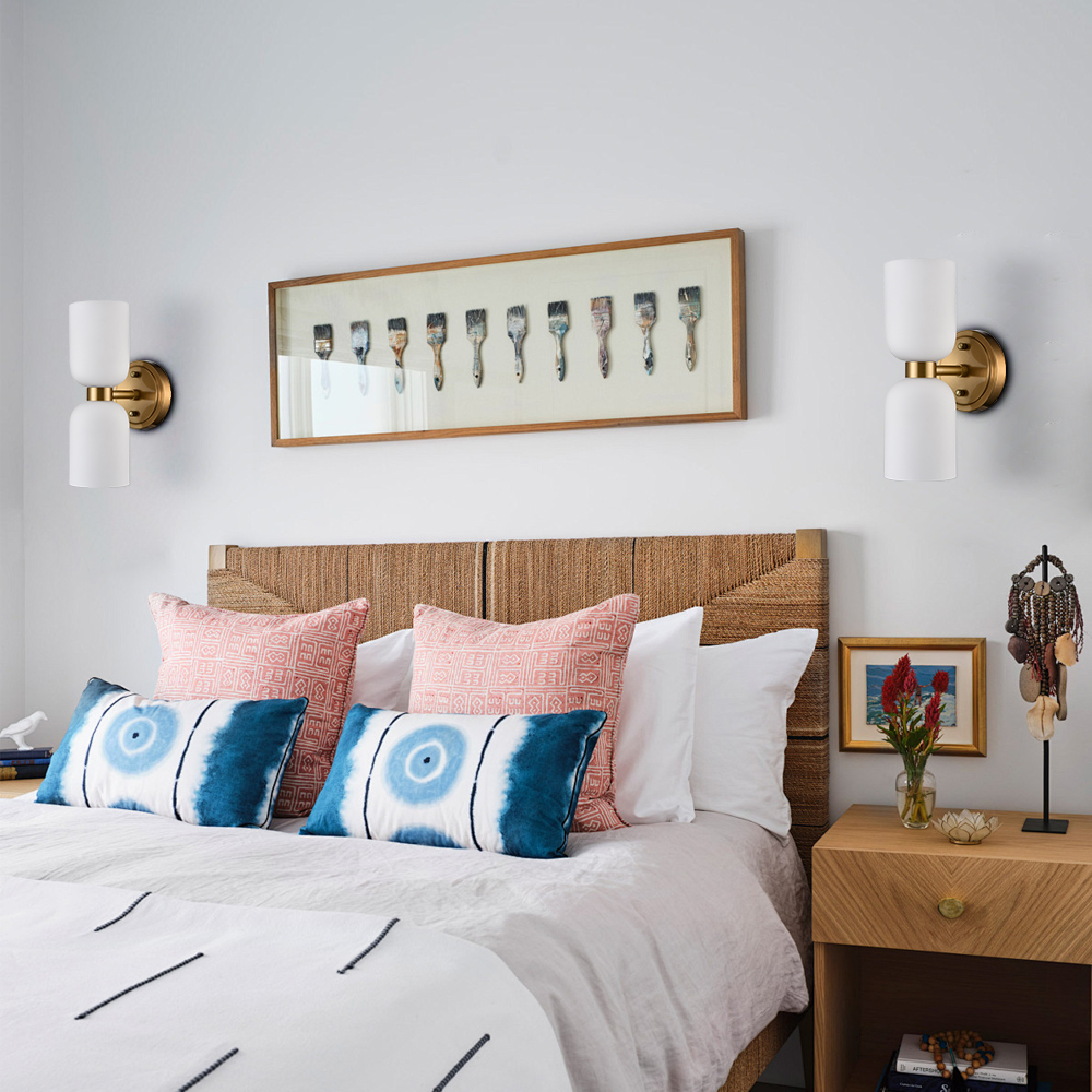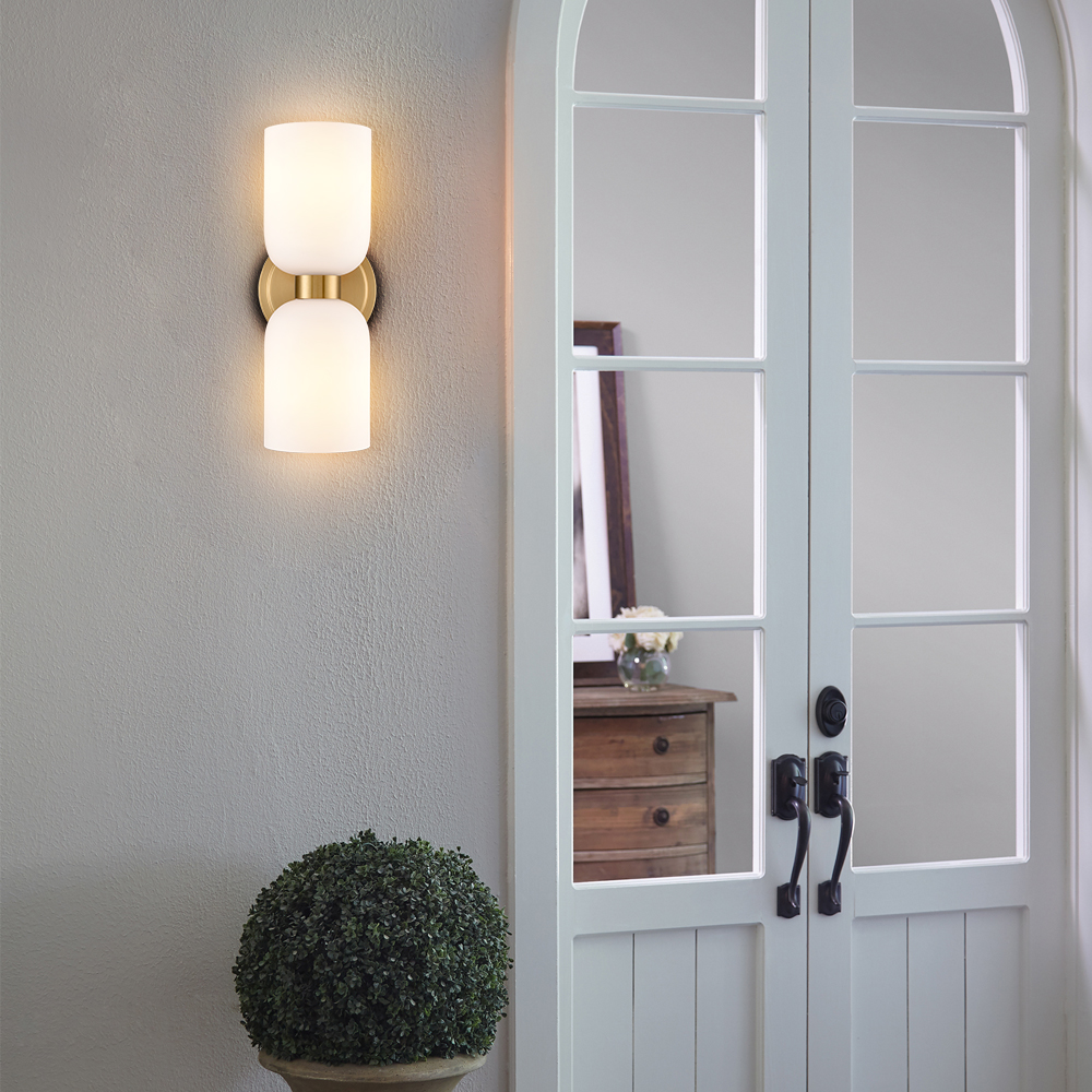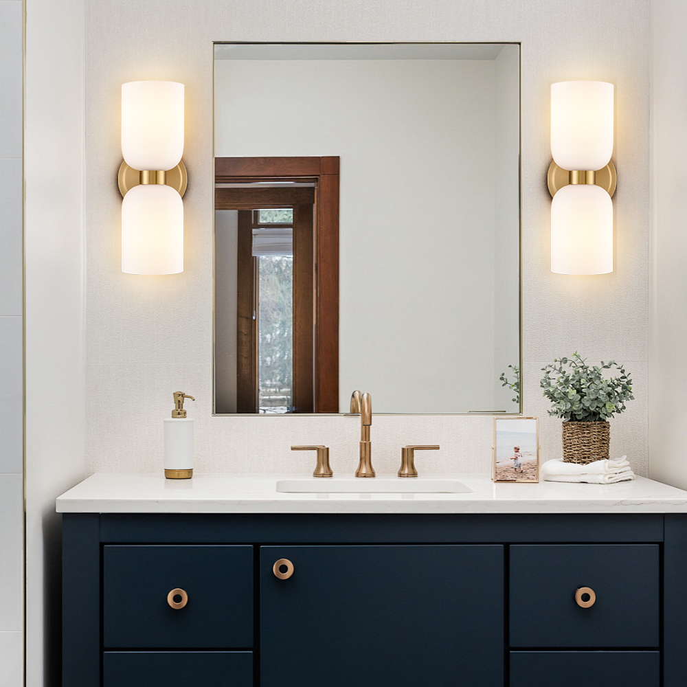 The modern gold vanity lights show off a rustproof electrophoretic gold finish, perking up your interior with a touch of shimmer. Crafted from impurity-free hand-blown glass, their milky glass shades distributes light evenly to avoid shadows. Their bow-knot-inspired design adds attractive eye appeal and unbeatable character to your interior. Their gleaming gold finish contrasts the milky glass shades and adds alluring visual interest to the space.