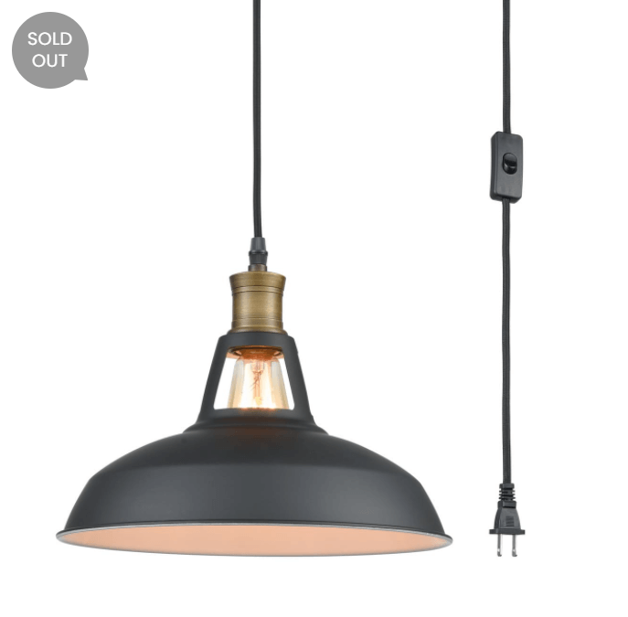 • 8. Industrial Plug-In Barn Shaped Pendant Light with On/Off Switch