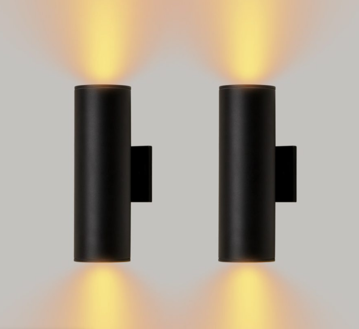 As the best outdoor wall light, this fixture features a cylinder metal shade with tempered glass diffusers. It's available in twos and illuminates from the bottom and top, thus giving off a dramatic lighting effect.