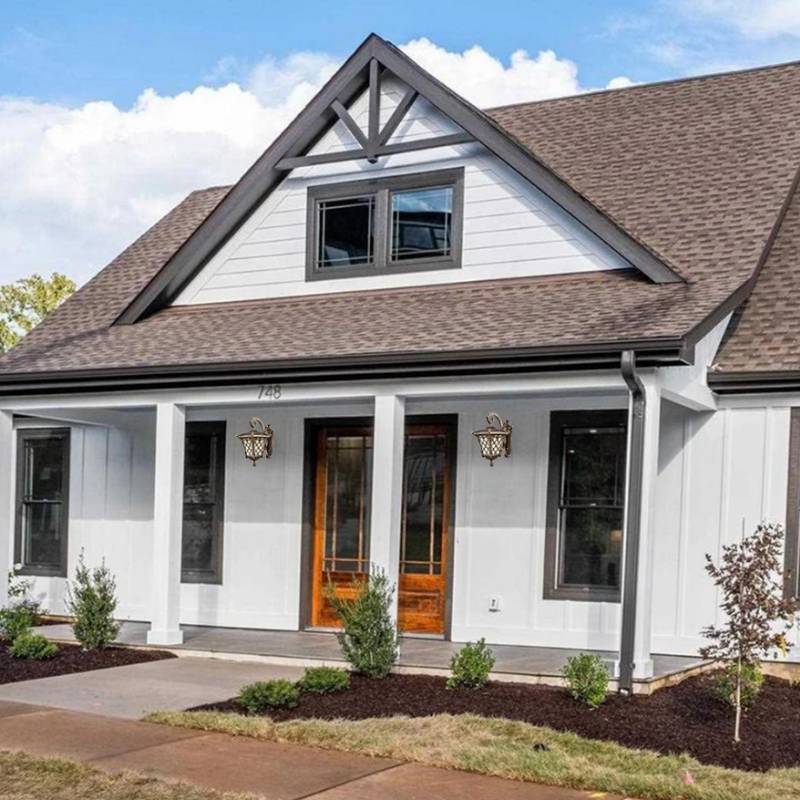 Finished in matte black, the black outdoor wall sconces lend a dash of drama to the alfresco space. Flanking the door, they boast trapezoid stone-patterned tempered glass panels that have all the style and modern flair to rejuvenate the entryway. The light fixtures’ opaque impurity-free hand-blown glass panels are gracefully encircled by the crisscross frame and the sculpted top and bottom accent, lending a touch of nostalgia to the space. Their soft flowing arms add a sense of movement to the space. Their matte black finish and the trapezoid glass panels draw the eye upward to a beautiful display of glass and metal suspended above. The flower pots, the door, and the rocking chair pull colors from the light fixture for a coordinated look. The entryway gets its unique character from the classic combination of black and white.