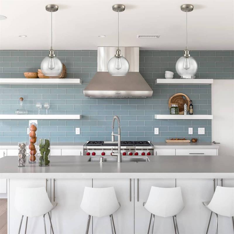 As multi-tasking space in your home, a kitchen is more than just a space for food-prep and cooking. You can also have a great time with your family and friends, cook and share food, finish your work, and enjoy your meals in the kitchen. If you are in the mood for getting a light fixture that delivers great geometry and balance to your kitchen, you should choose a globe pendant light that complements the overall theme and decor of your kitchen.
