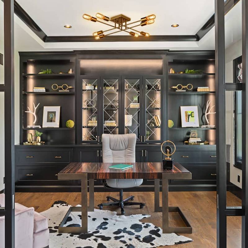 Featuring a rustproof brass finish, the farmhouse flush mount ceiling lights reinvigorate your living space with a bit of bling. The ceiling lights’ tapered finely welded open cages encircle an exposed bulb for a refined touch. They showcase a caged look that allows a soft glow to shine through freely. They keep the small living room well-lit and create an inviting ambiance for gathering. It encompasses both a rustic aesthetic and a shiny hue, yet maintains an industrial edge.