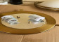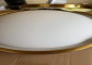 The flush mount ceiling light features a unique white glass shade and brass finish, creating a clean, modern aesthetic in your house.