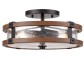 The black metal semi flush mount ceiling light’s canopy, bottom accent, metal frame, and lamp holders flaunt a semigloss black finish. The round metal bars that encircle the seeded glass panel are coated with a tawny faux wood finish, conveying a hint of rusticity to your living space. The ceiling light is held aloft by the metal frame to bring a rich visual appeal. It is a perfect fixture to transform your bathroom, bedroom, entryway, foyer, hallway, kitchen, living room, porch, patio, balcony, front door, entryway, and corridor.