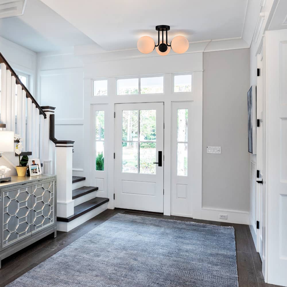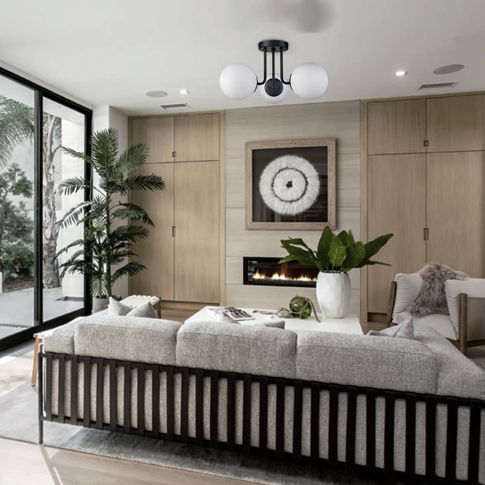 3-light Modern Black Globe Semi Flush Mount Ceiling Light Fixture for Bedroom 3-light Modern Black Globe Semi Flush Mount Ceiling Light Fixture for Bedroom