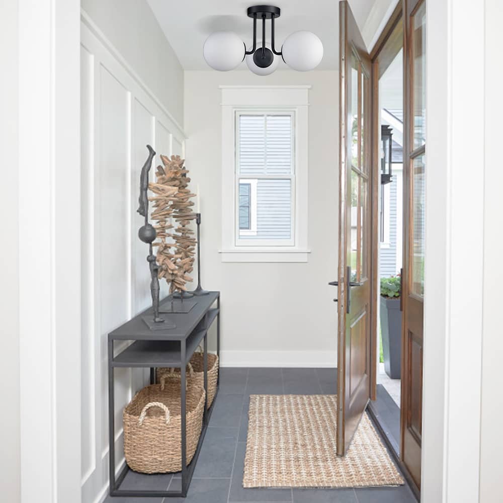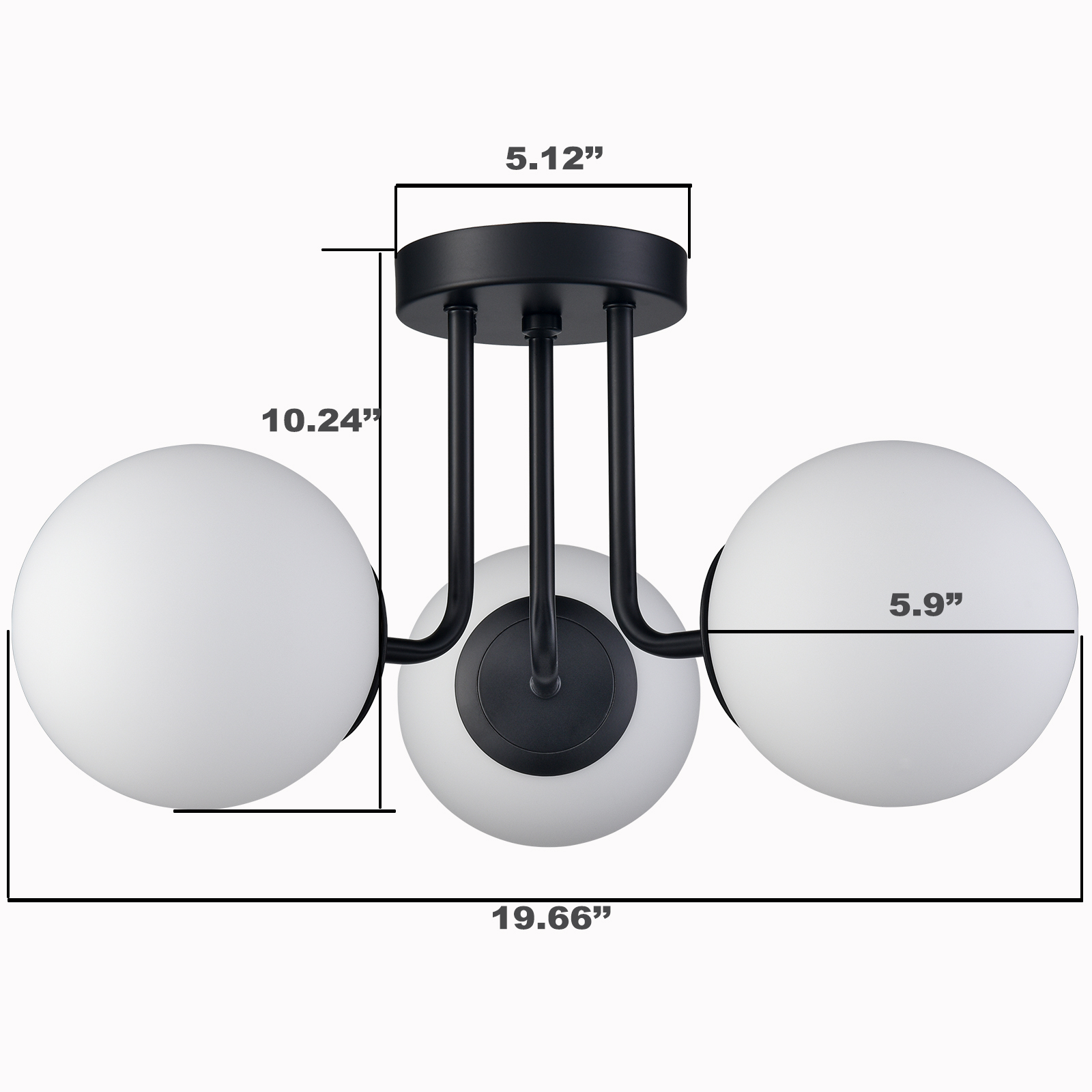 Boasting a rustproof semigloss black finish, the modern black globe ceiling light’s canopy, arms, and lamp-holders bring a dash of drama to your interior. Crafted from impurity-free hand-blown opaque opal glass, it provides the perfect blend of mid-century classic and contemporary elements. Its opal glass shades contrast the black finish and showcase a classic black-and-white color combo. The semigloss black finish flaunts four coats of paint that are applied to the light fixtures by hand. Its black paint features 220-degree high-temperature baking varnish craft for strong adhesion. Three glass shades are supported by gracefully curved arms, conveying a refined touch. The globe shades can distribute light evenly to avoid shadows.