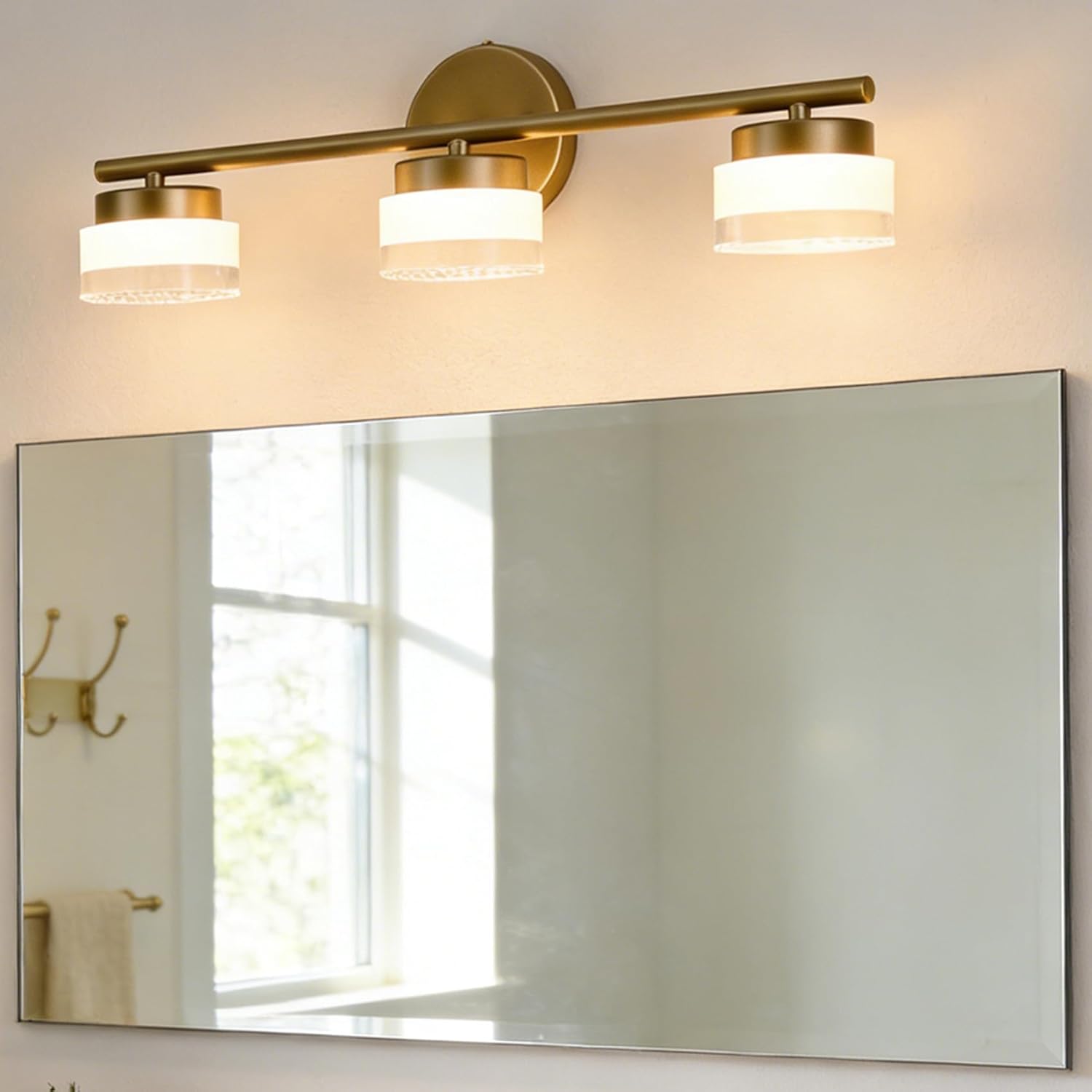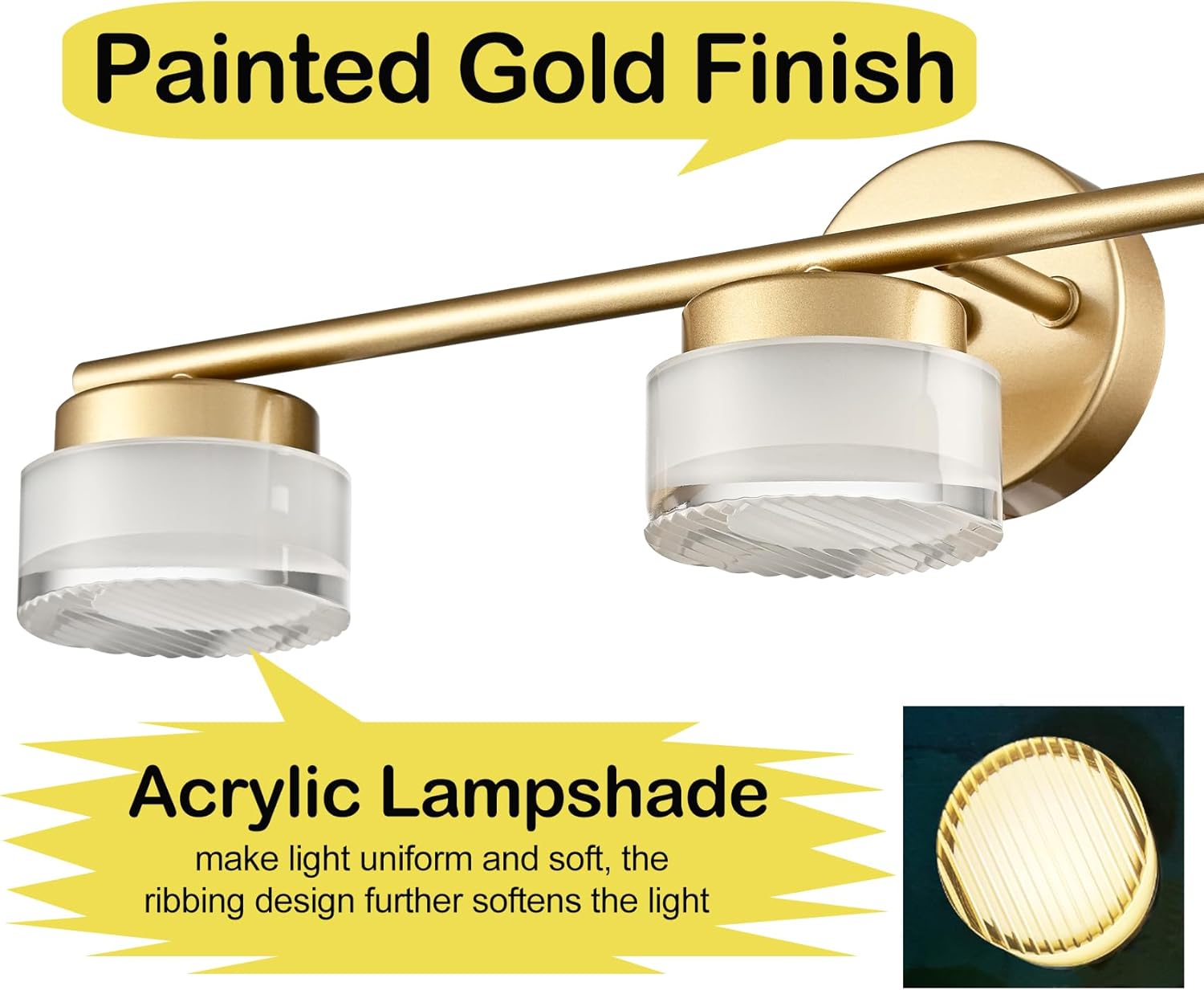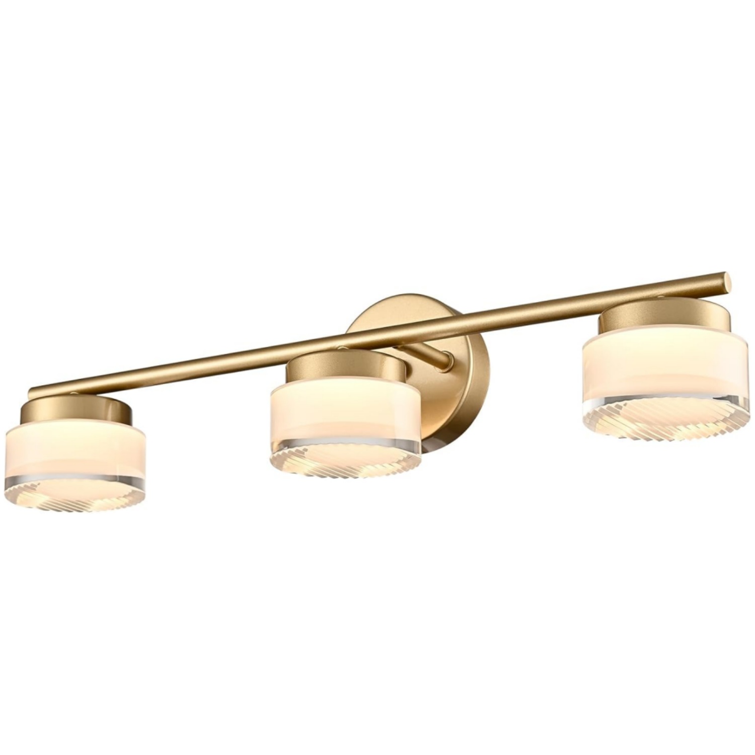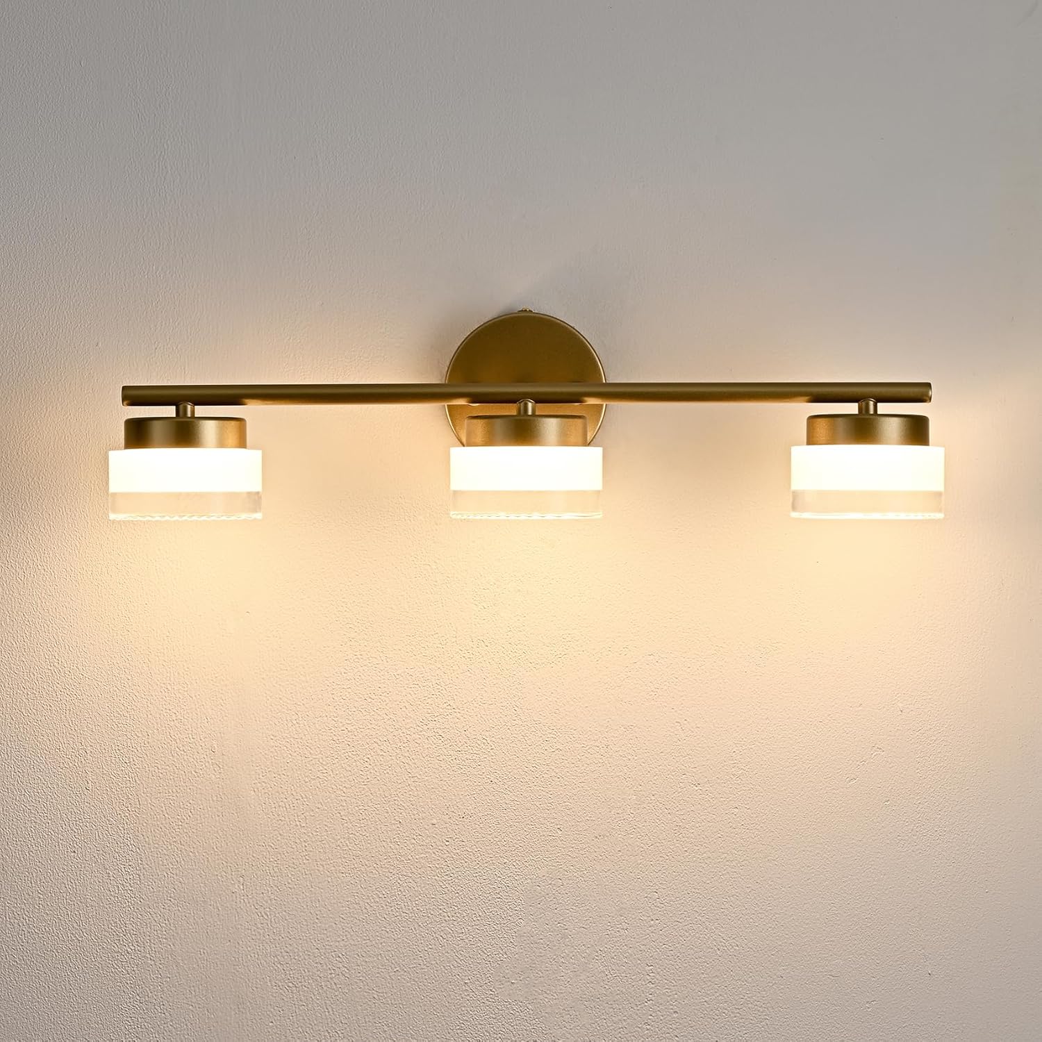 The vanity light fixture boasts a rustproof gold finish, enlivening your interior with a glint of glamour. Crafted from acrylic and metal, it provides the perfect blend of mid-century classic and modern elements. The mini acrylic drum shades contrast with the gold finish and add alluring visual interest to the living area. Its drum shades are held aloft on the sturdy metal gold arm, introducing a large dose of texture to the space. With exquisite workmanship, 3 shades are evenly aligned in a linear formation when viewed from different angles. It offers a surprising twist and supplies a dash of drama without overpowering the rest of the space. A charming glow shines through the wall light, creating intriguing light effects and shades.