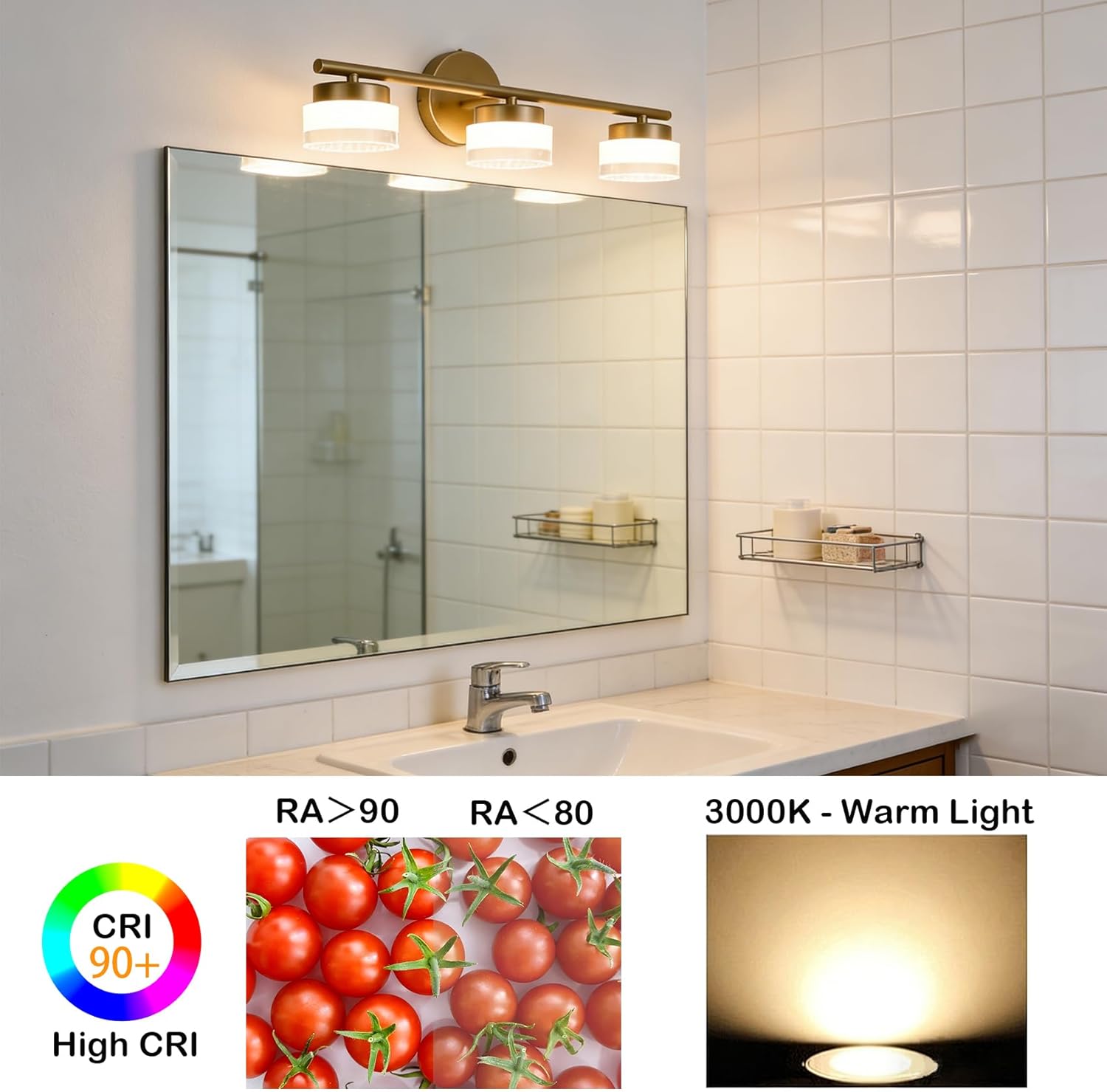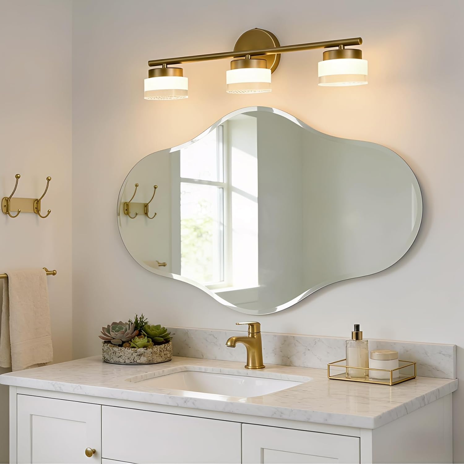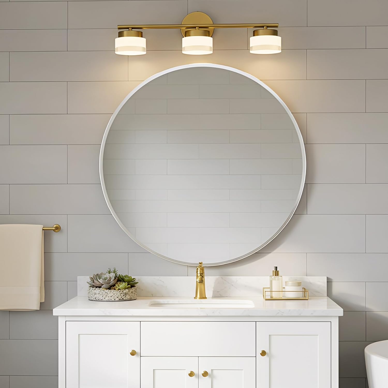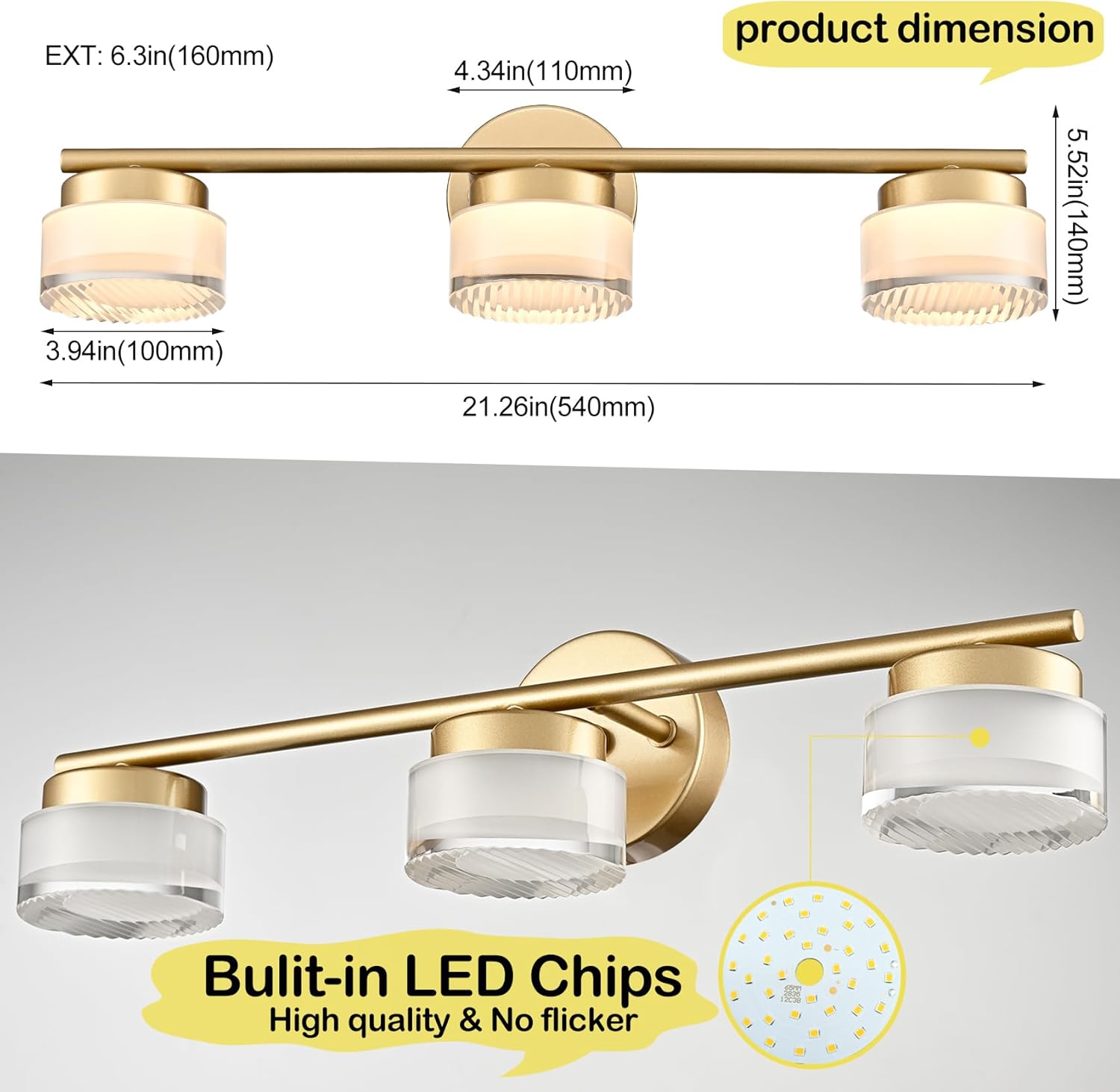 The vanity light fixture boasts a rustproof gold finish, enlivening your interior with a glint of glamour. Crafted from acrylic and metal, it provides the perfect blend of mid-century classic and modern elements. The mini acrylic drum shades contrast with the gold finish and add alluring visual interest to the living area. Its drum shades are held aloft on the sturdy metal gold arm, introducing a large dose of texture to the space. With exquisite workmanship, 3 shades are evenly aligned in a linear formation when viewed from different angles. It offers a surprising twist and supplies a dash of drama without overpowering the rest of the space. A charming glow shines through the wall light, creating intriguing light effects and shades.