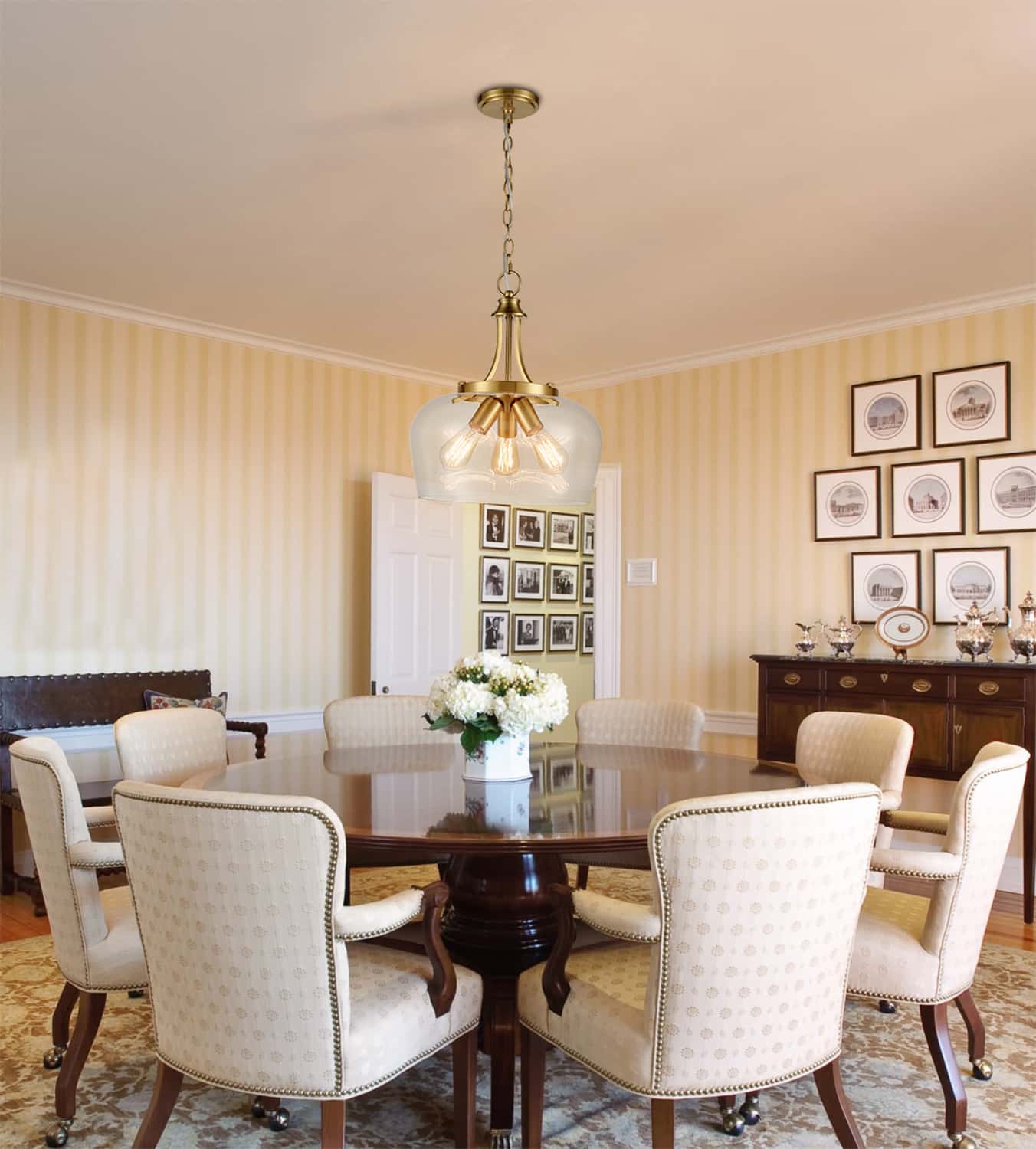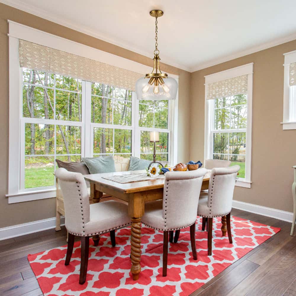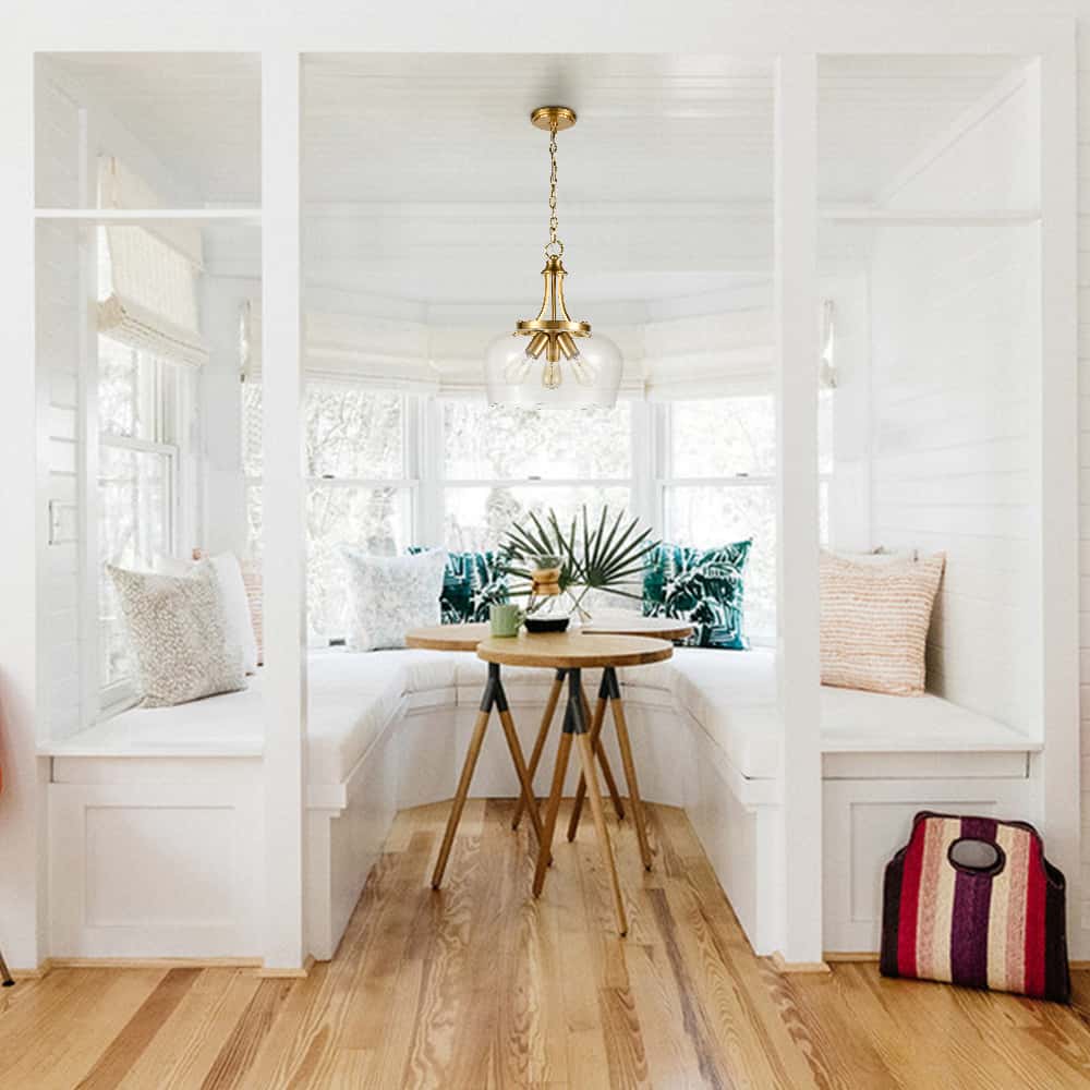 • With brass finish metal and stable clear glass lampshade, the pendant lamp combines mid-century style, creating a warm atmosphere and bright light in you room.