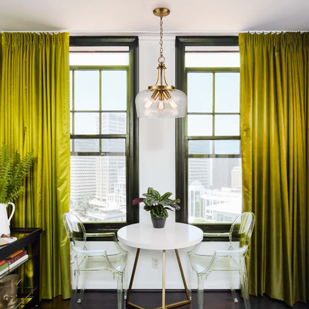 Adjustable Height 3-Light Brass Pendant Light with Clear Glass Shade