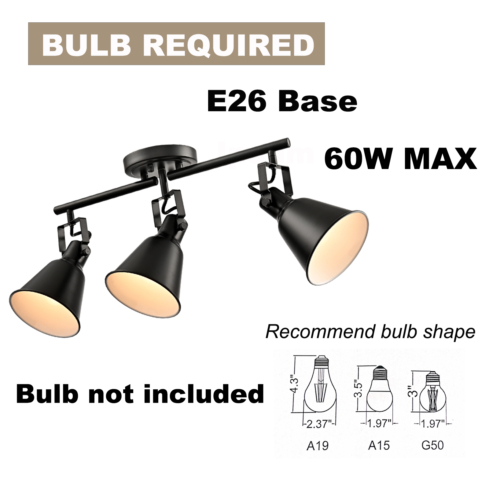 The ceiling track lighting comes with 3 E26 base sockets which are compatible with a variety of bulb types: LED, INCANDESCENT, CFL.