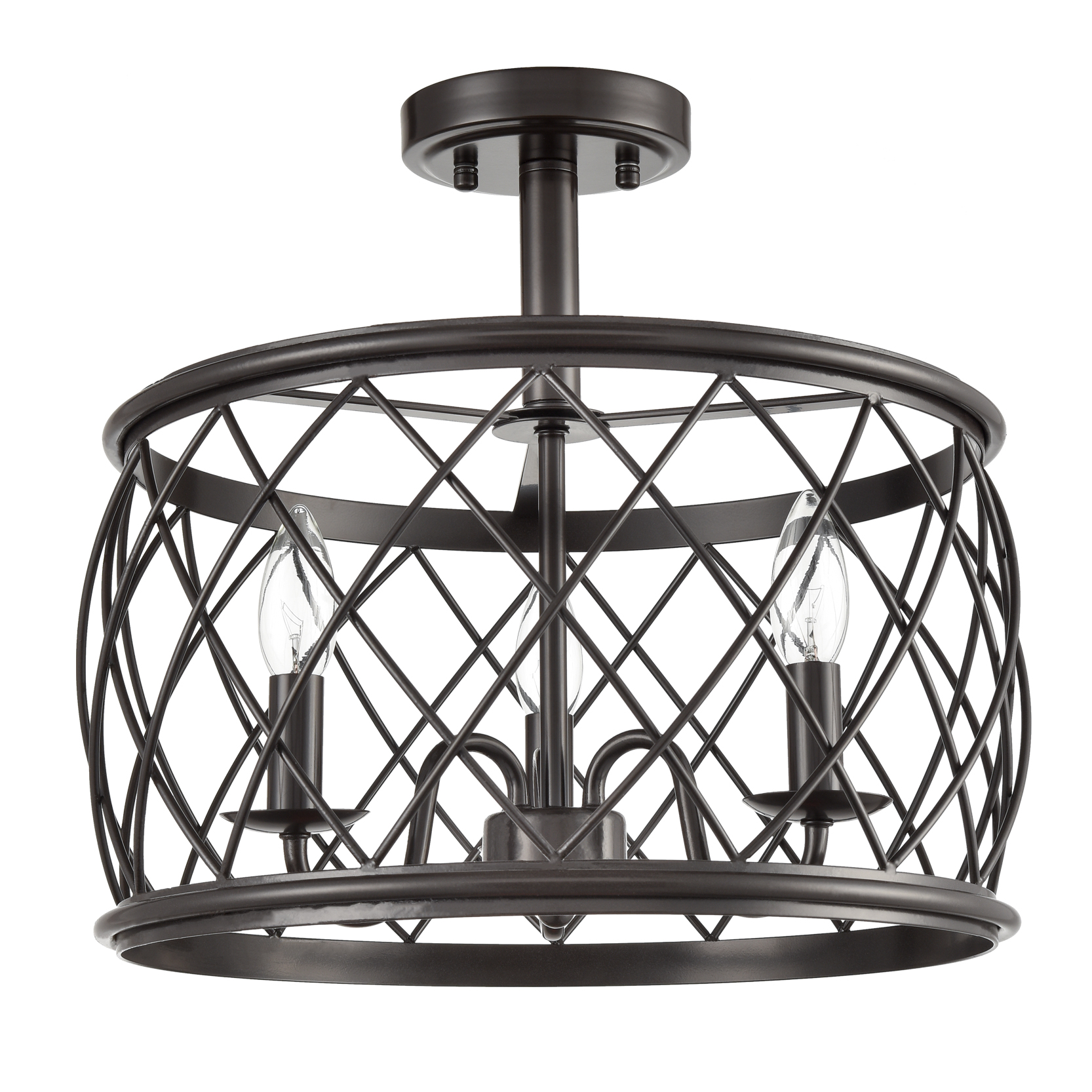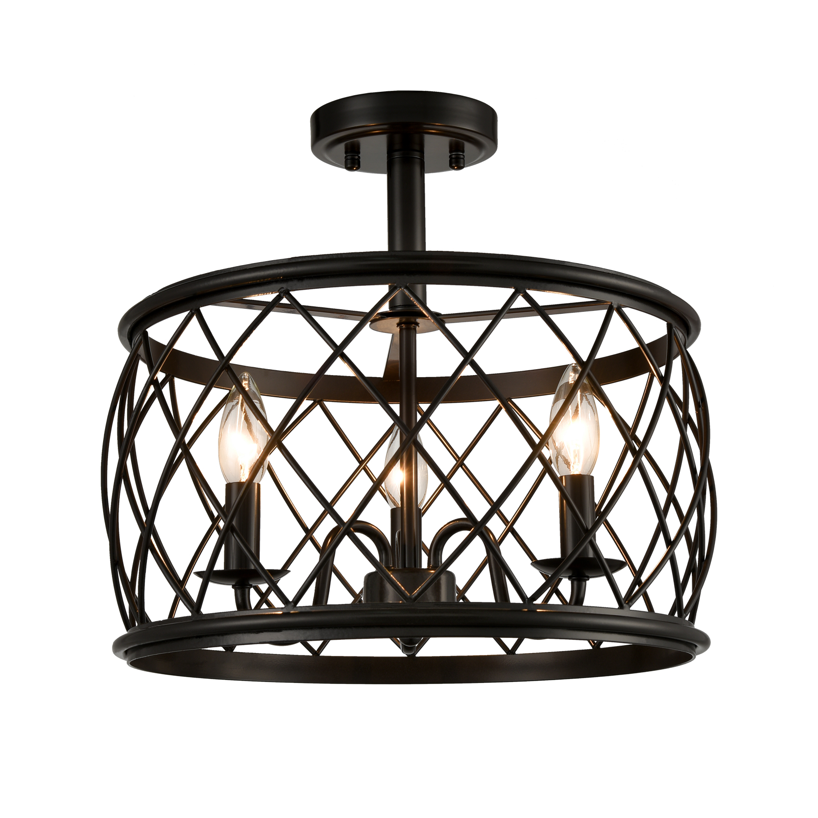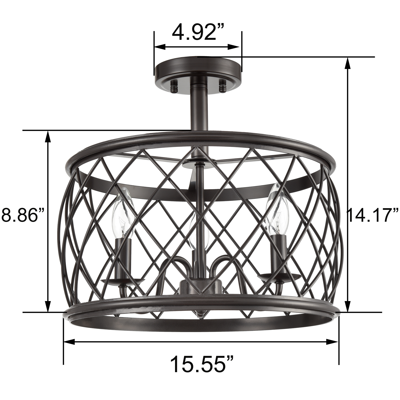 Being dressed in an oil rubbed bronze finish, the farmhouse drum semi-flush mount ceiling light conveys a hint of rusticity to your living area. It flaunts a unique drum shade look that keeps your home feel open and airy. Featuring a crisscross accent, the farmhouse semi-flush mount ceiling light’s drum shade adds visual interest and character to your living space.