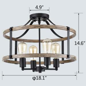 The semi flush ceiling light features 4 E26 base socket which is compatible with a variety of bulb types: LED, INCANDESCENT, CFL.