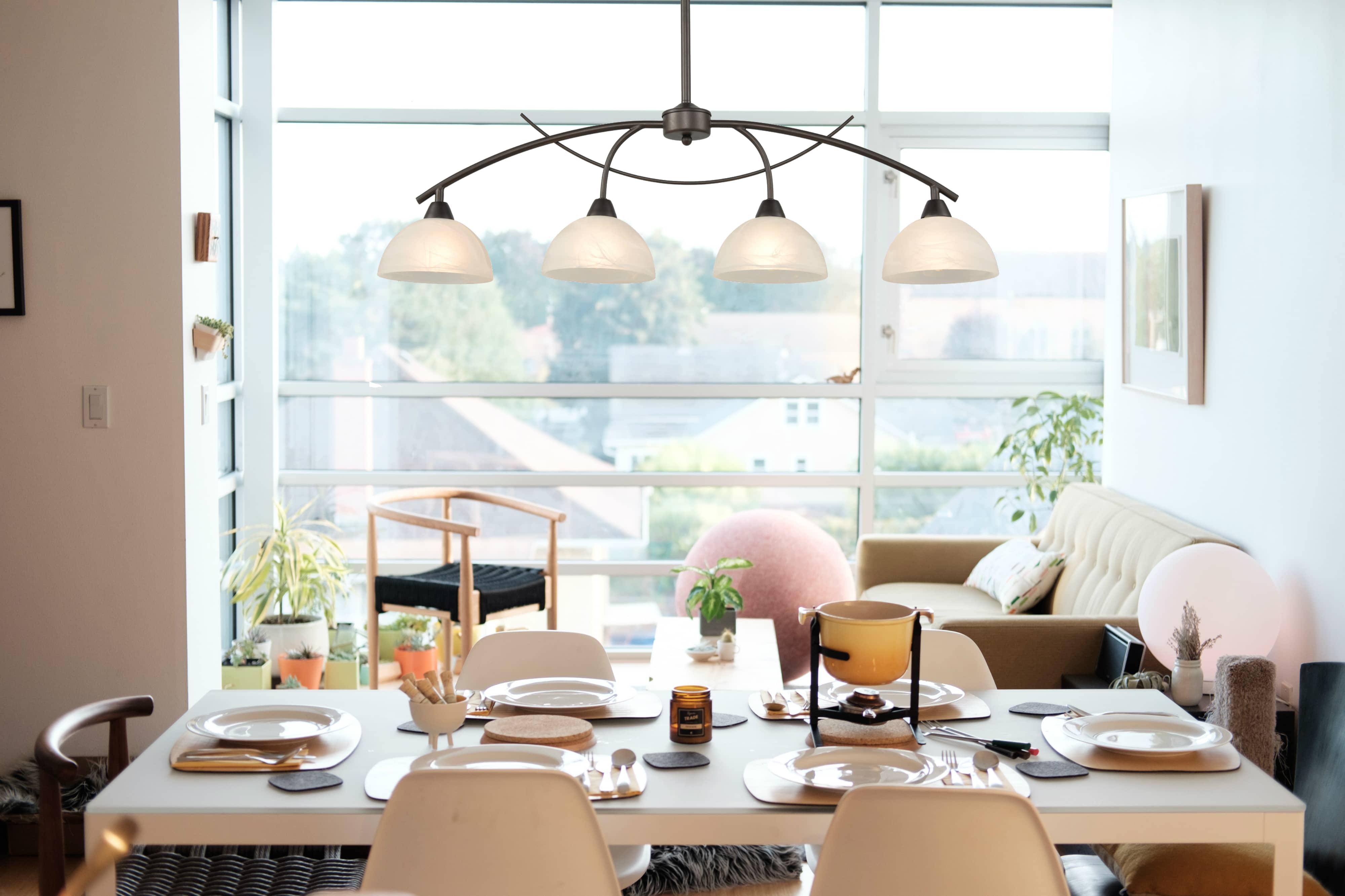 This kitchen island pendant light comes with 4 E26-based sockets which are compatible with a variety of bulb types: LED, INCANDESCENT, CFL.