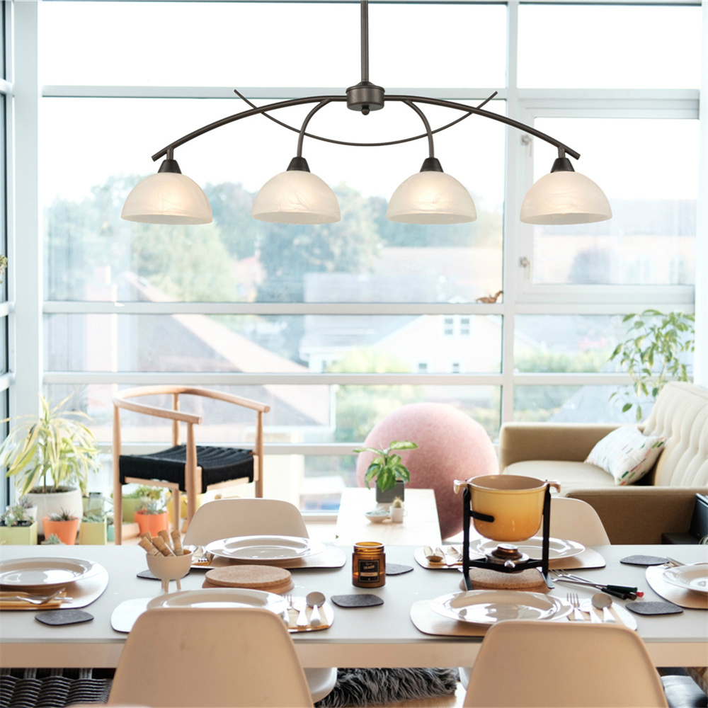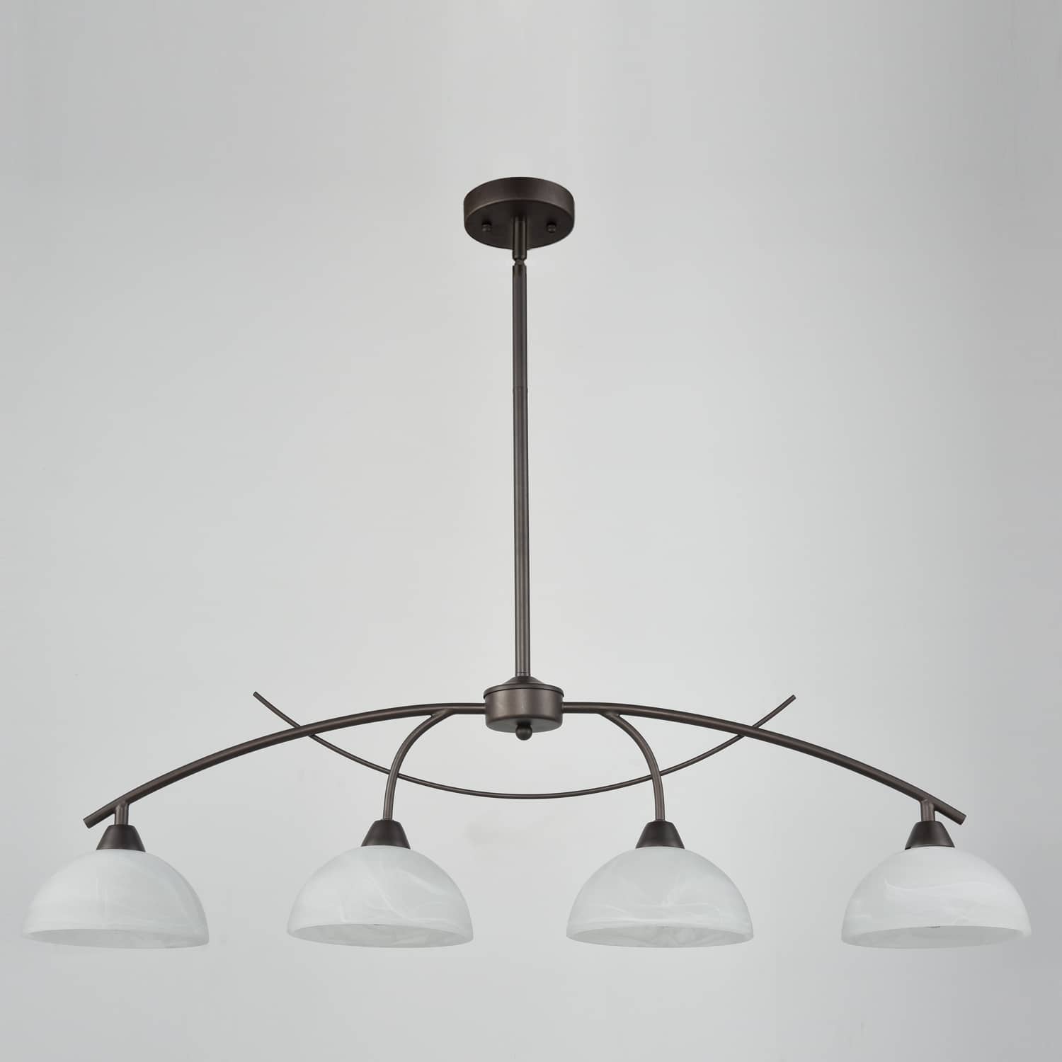 With a unique bronze finish, the kitchen island lighting equipped with bowl frosted alabaster glass shades, gracefully arched design, it's a great addition to your home