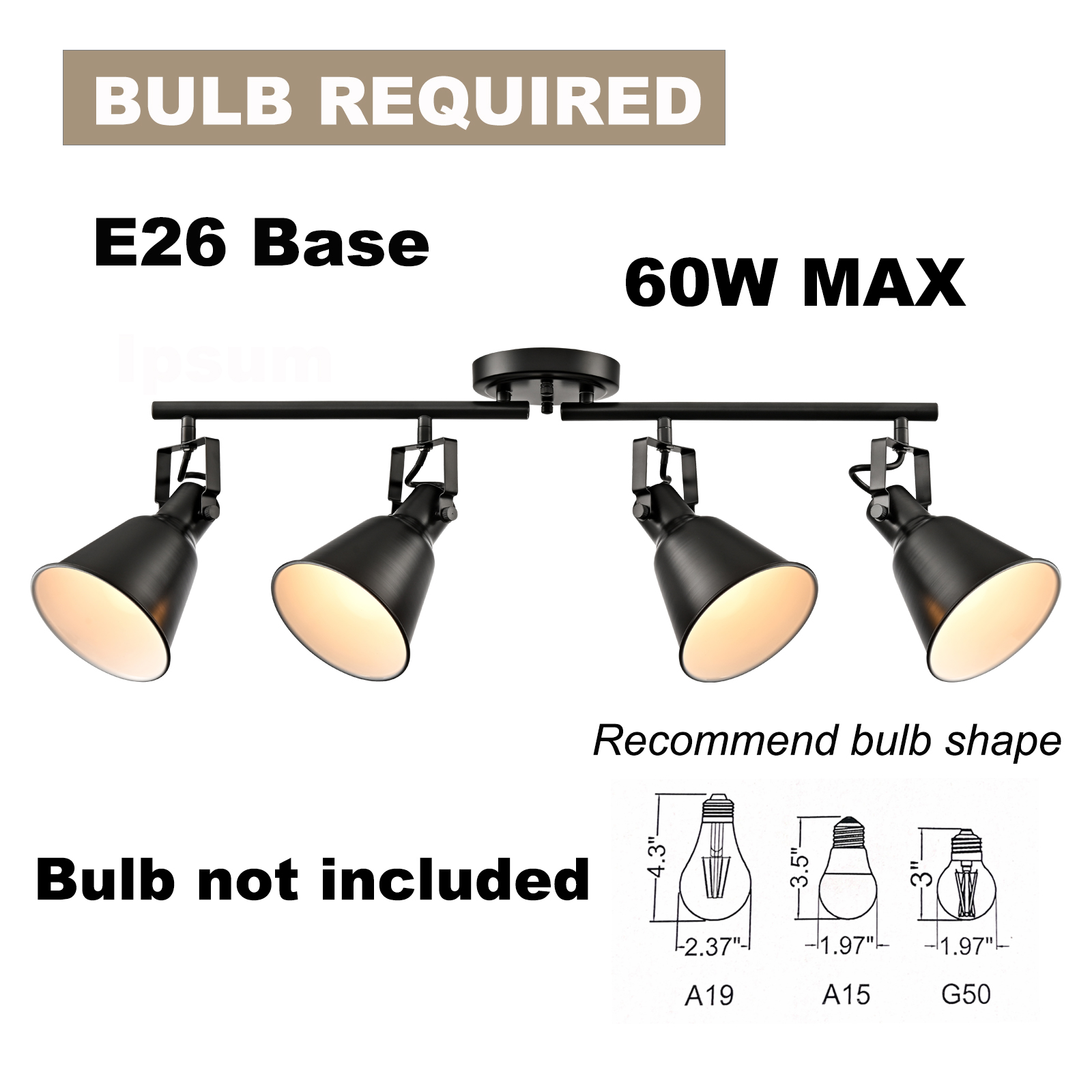 The ceiling track lighting comes with 4 E26 base sockets which are compatible with a variety of bulb types: LED, INCANDESCENT, CFL.