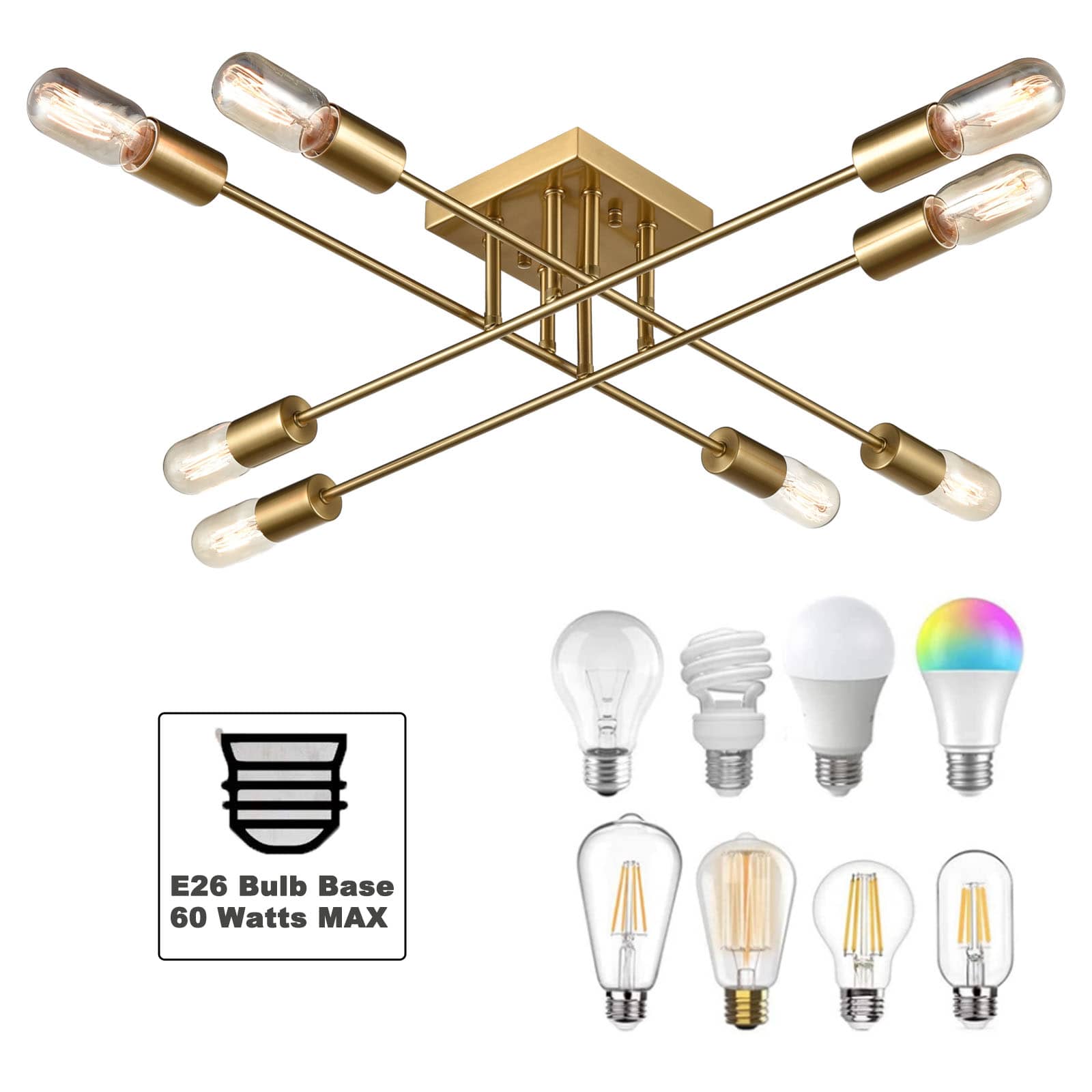 The ceiling light features 8*E26 base socket which is compatible with a variety of bulb types: LED, INCANDESCENT, CFL.