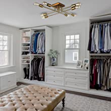 The swanky cool light fixture is not only beautiful but also provides ample lighting for the entire room (looks amazing if you have a large open floor plan area). The gold finish adds a touch of elegance to my home decor and the sputnik design gives it a modern look. The installation was fairly easy and all the necessary hardware was included. I'd suggest having help with this one but if you're crafty you could probably swing it by yourself. Best feature - mixes retro with modern in the best ways possible!