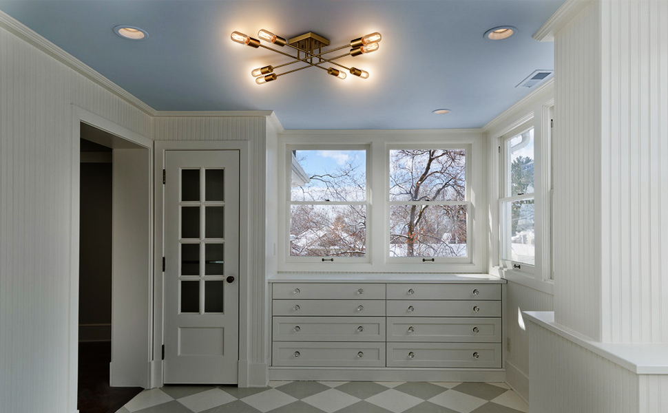 Flaunting a rustproof electrophoretic brass finish, the semi-flush mount light fixture shows off the unique texture of double-layer electroplating and brushed metal. The shimmery finish delivers dramatic decorative impact and makes your home fizz with a pop of personality. The semi-flush mount light fixture’s four intersecting arms spread light in all directions and each arm carries a bulb at both ends. The sputnik-inspired design brings a touch of modern sophistication to this semi-flush mount light fixture. This fashionable fixture flaunts a stunning starburst silhouette, providing depth, dimension, and a dash of drama to your space.