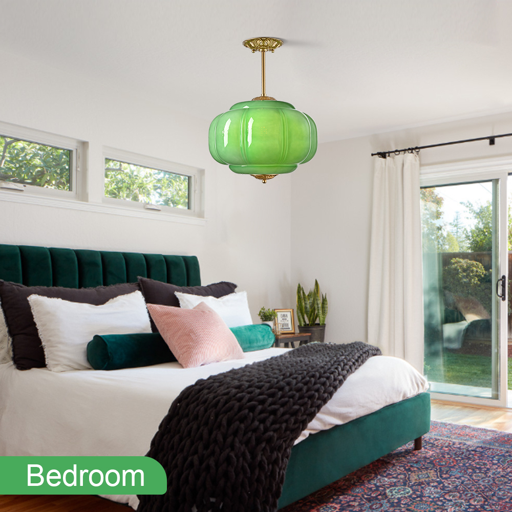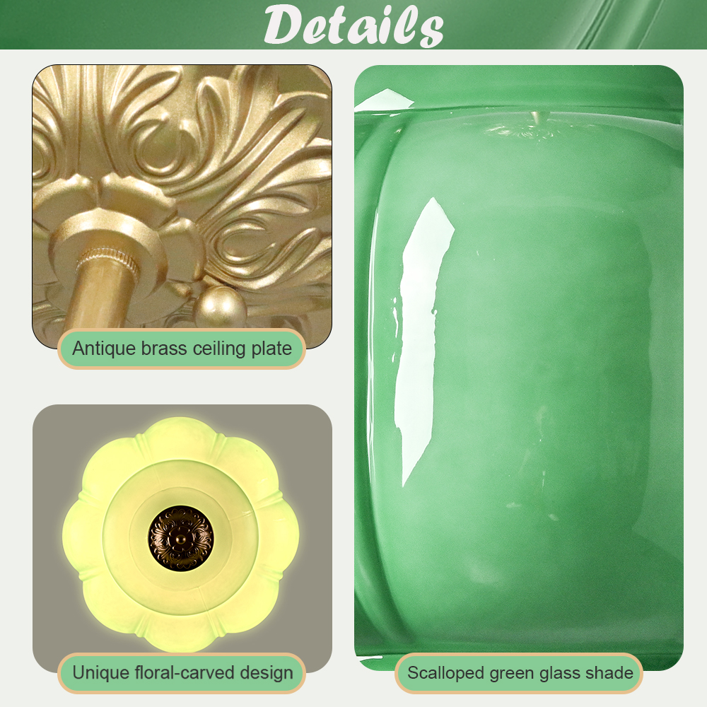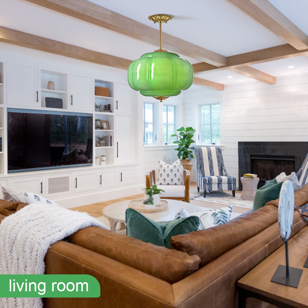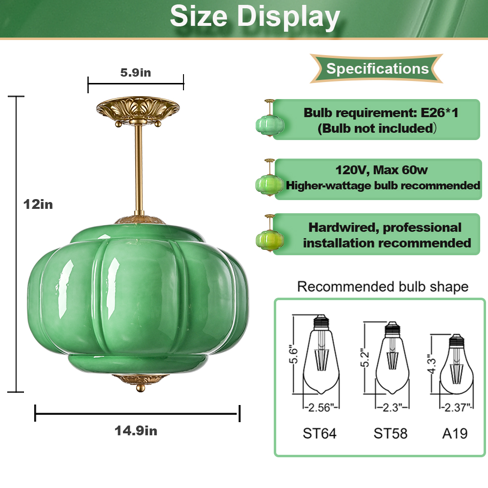 The milk glass ceiling light’s canopy, hanging rod, top accent, and bottom accent showcase a brass finish, livening up your space with glitzy sparkle. Its green glass shade gives your home a snappy look and a glamorous, refreshing vibe. Its mix of finishes encompasses both vintage touch and brisk color, yet maintains an industrial feel. Crafted of impurity-free hand-blown milk glass, its pumpkin-inspired lampshade provides a touch of whimsy to your living space. Its brass finish and the green lampshade draw the eye upward to a beautiful display of glass and metal suspended above. It comes with one 5.9-inch rod and one 12-inch rod.