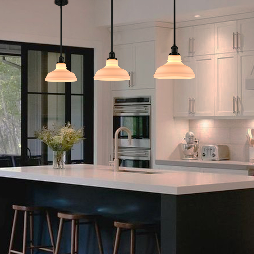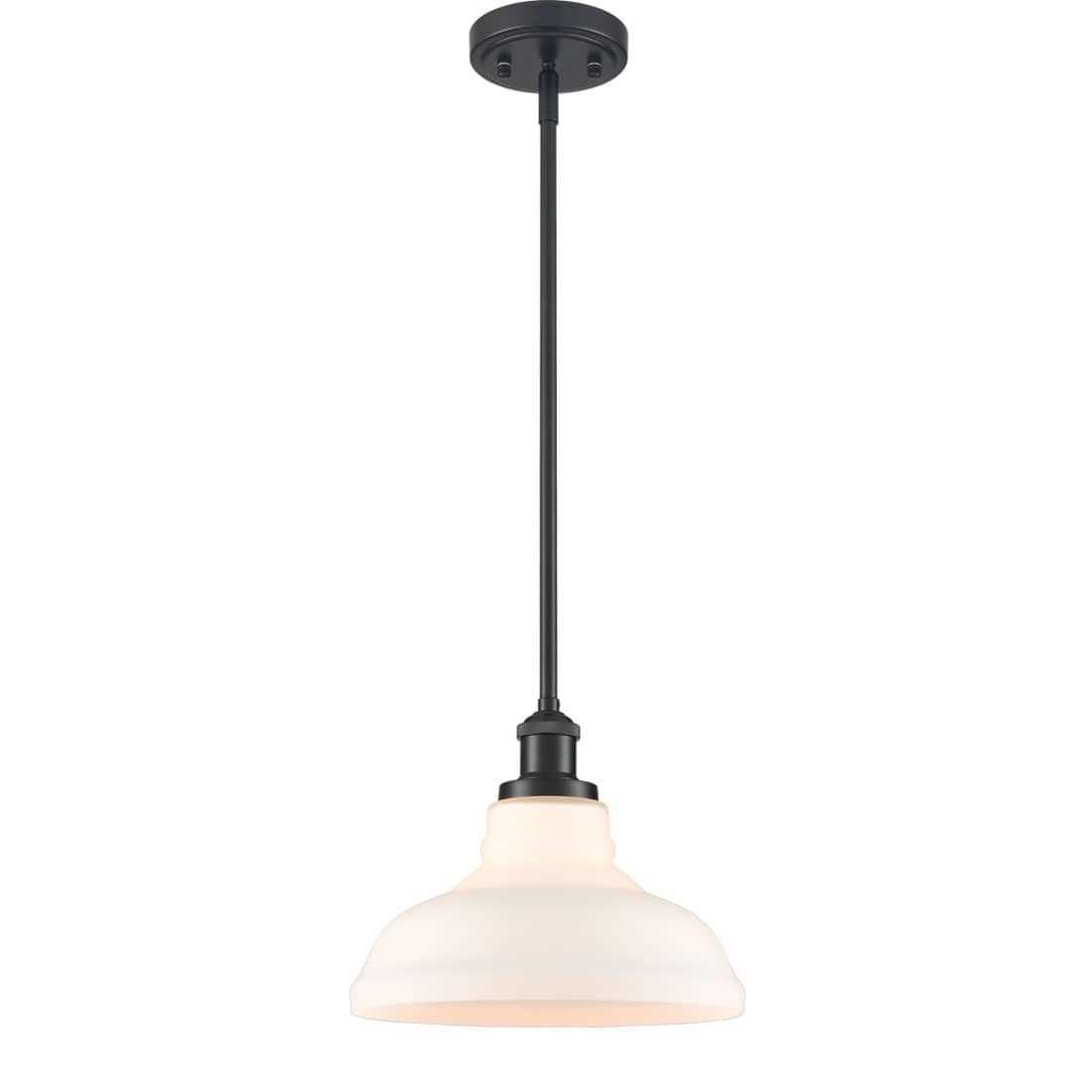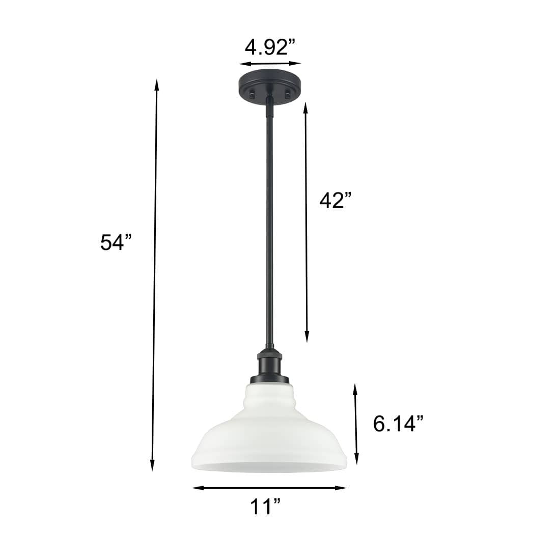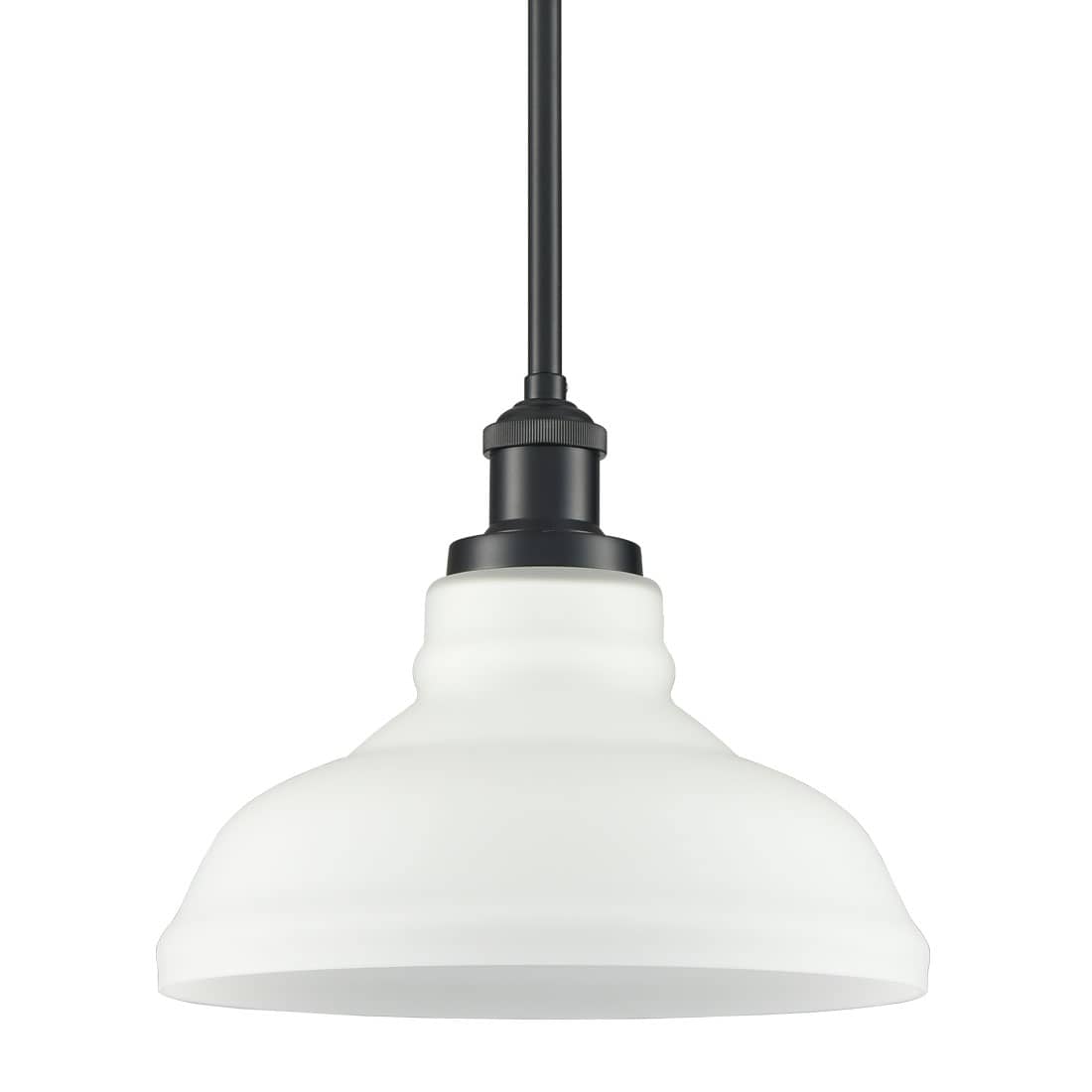 The black pendant lighting’s canopy, rod, and lamp holder give your living space a touch of urban sophistication with a semigloss black finish. Crafted of impurity-free hand-blown opal glass, its dome shade upgrades your space with rich textural appeal. Its opal glass dome shade contrasts the black finish and shows off a classic black-and-white color combo. It comes with three 12-inch rods and one 6-inch rod. It can be installed on sloped ceilings.