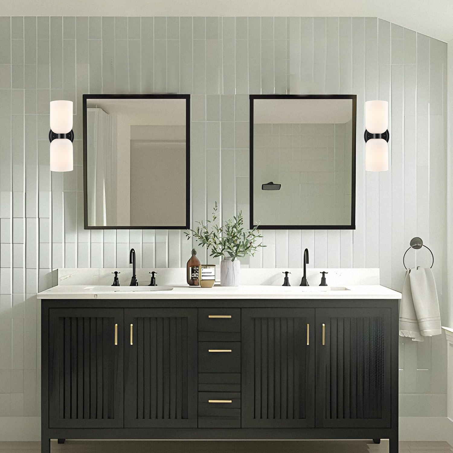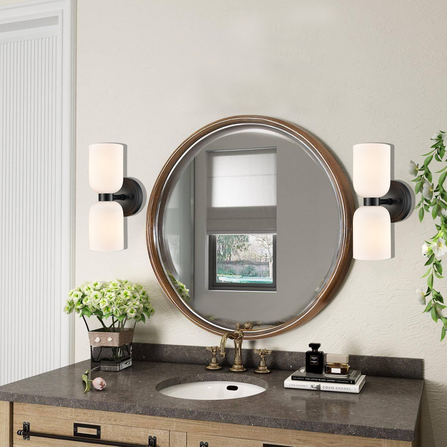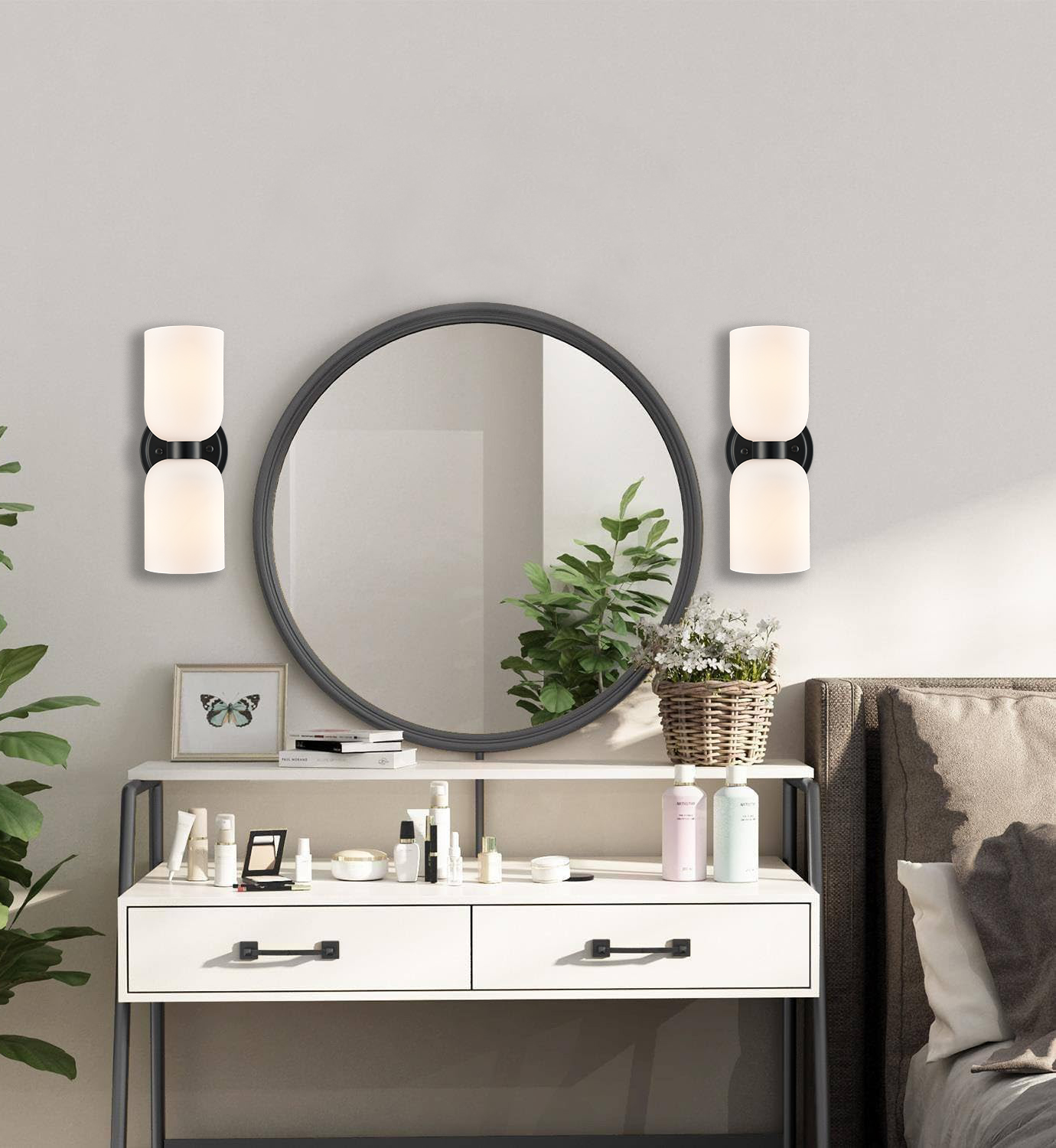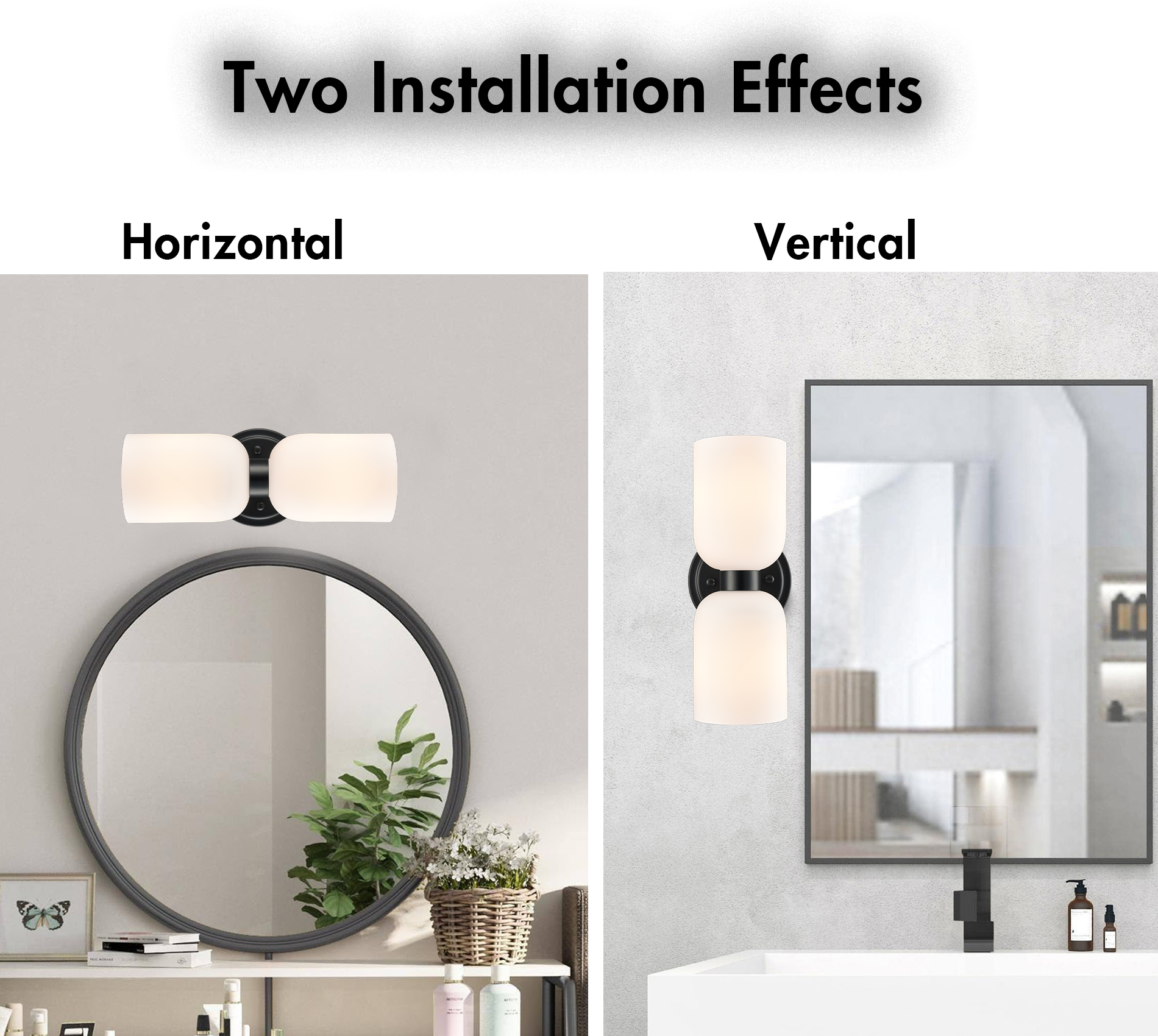 The black wall sconces’ canopies, lamp holders, and arms boast a rustproof black finish, perking up your interior with a dash of drama. Crafted from impurity-free hand-blown glass, their milky white glass shades distribute light evenly to avoid shadows. Their bow-knot-inspired design adds attractive eye appeal and unbeatable character to your interior. Their black finish offers a stark contrast to the milky white glass shades, adding character and pizzazz to the space. They can be installed horizontally or vertically to suit your different lighting needs.