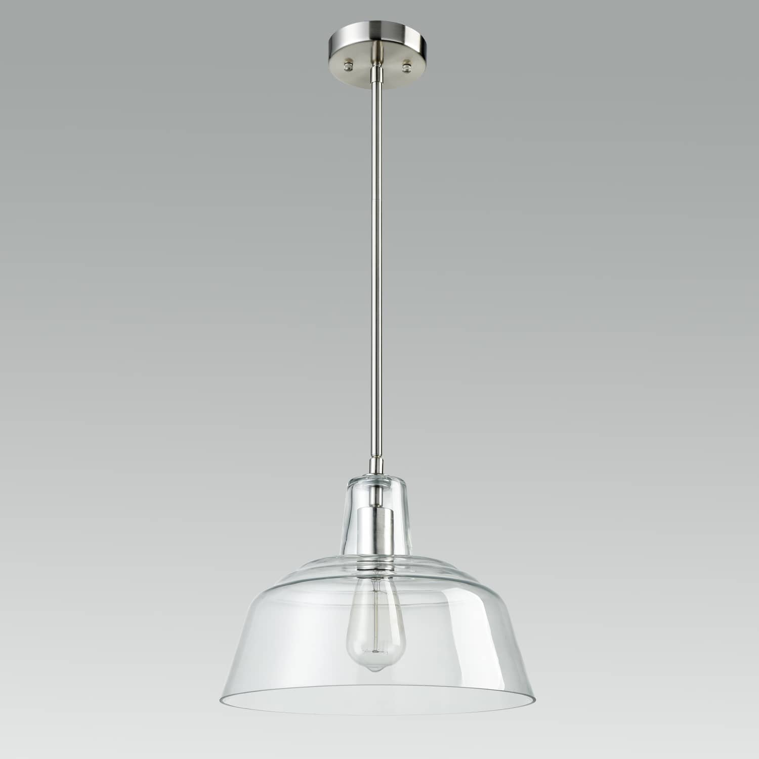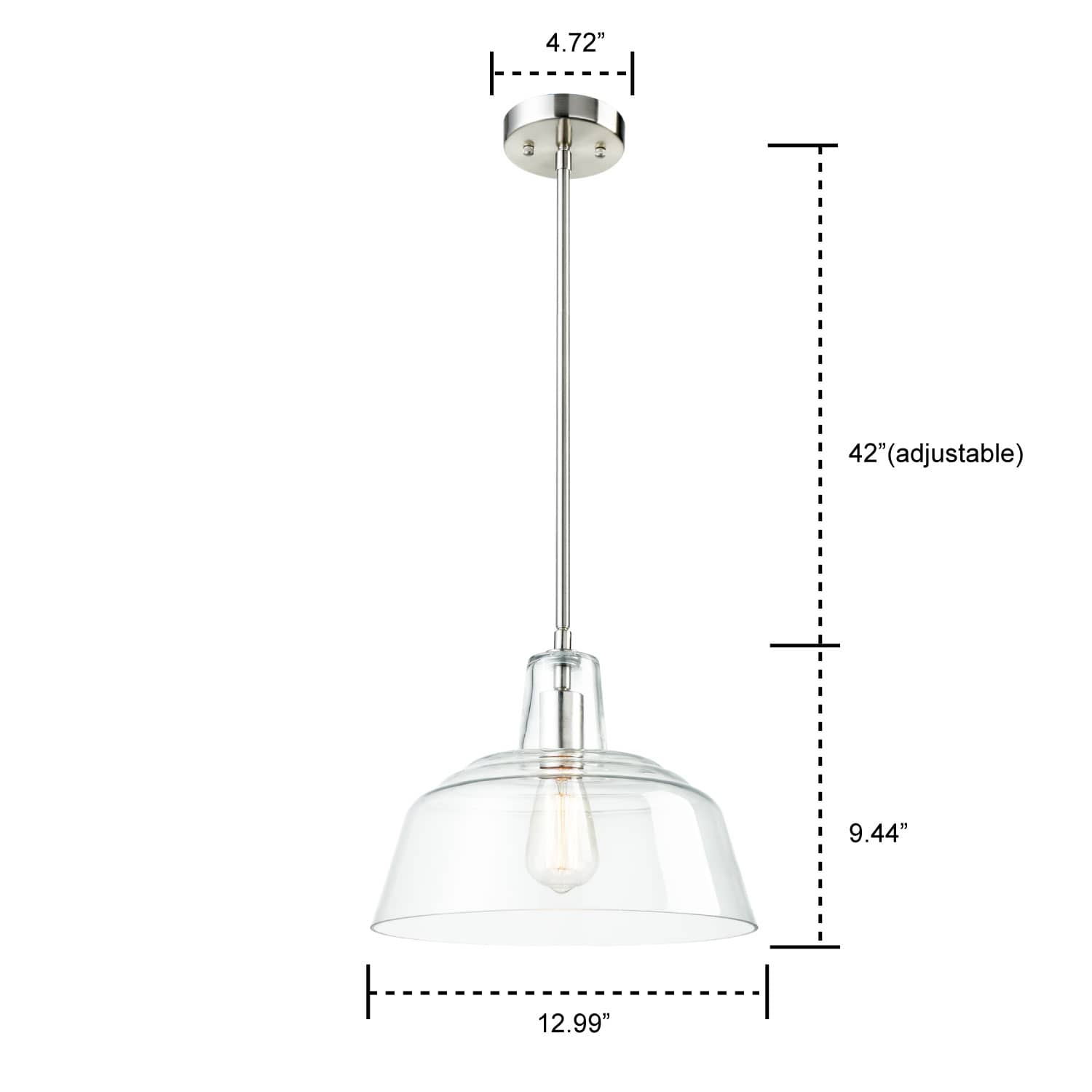 Featuring a rustproof brushed nickel finish, the glass pendant light adds a bit of metallic glitz to your home decor. Crafted of impurity-free ultra-clear hand-blown glass, its clear glass dome shade with excellent light transmittance gives an industrial feel to your aesthetic.