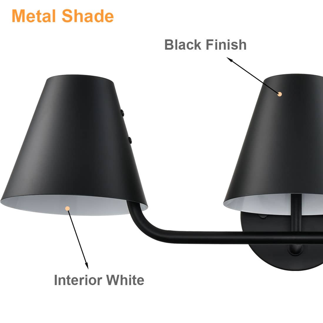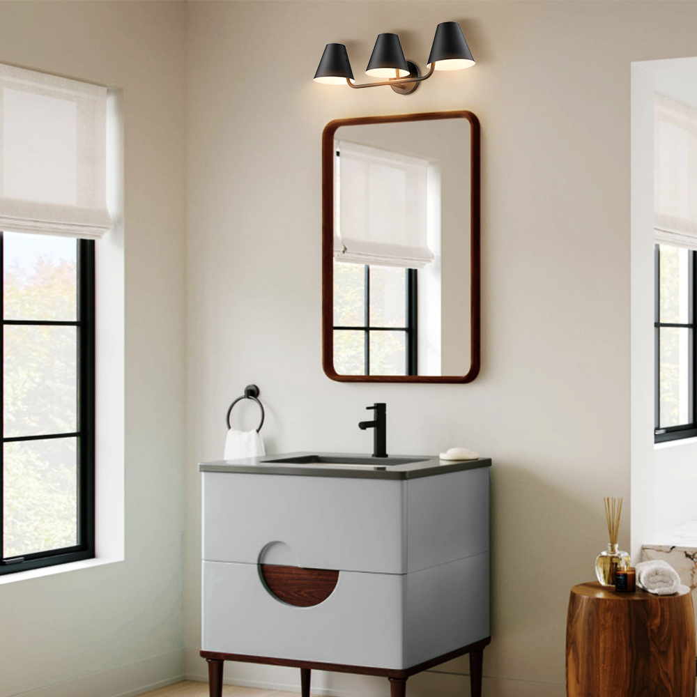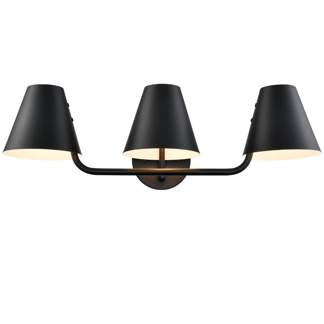 Featuring a rustproof black finish, the 3-light bathroom vanity light gives your living space a touch of urban sophistication. Its cone shades flaunt a black finish on the exterior while they sport a white finish on the interior. Its beautiful dual finish makes an industrial yet classic statement in your home. The white interior of the cone shades perfectly reflects light so that the wall lamp can provide ample and diffused ambient light. Crafted from solid metal, it introduces a farmhouse feel to your living space.
