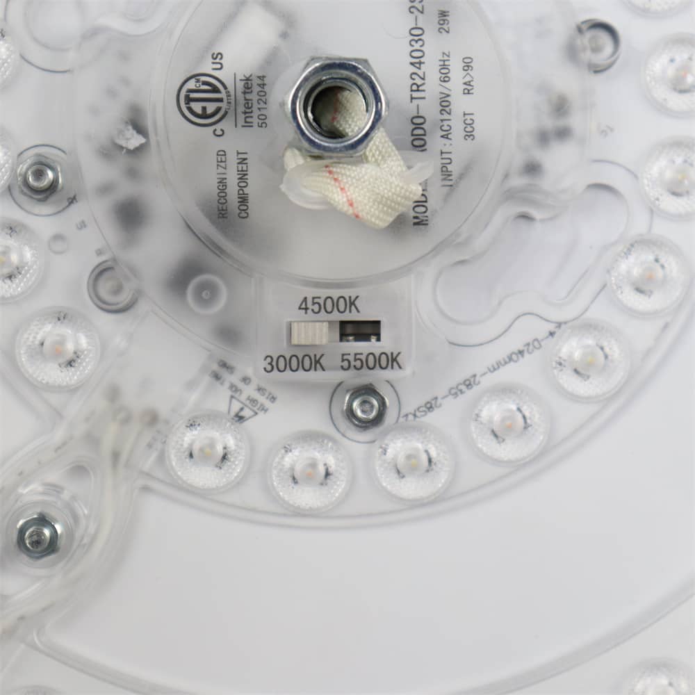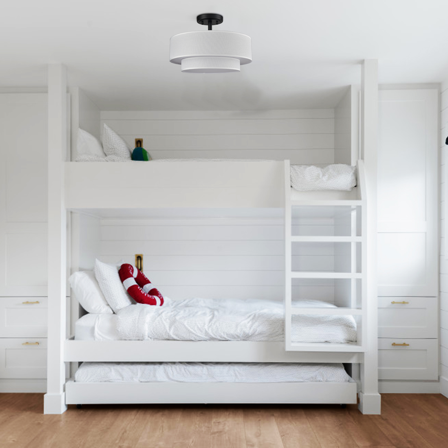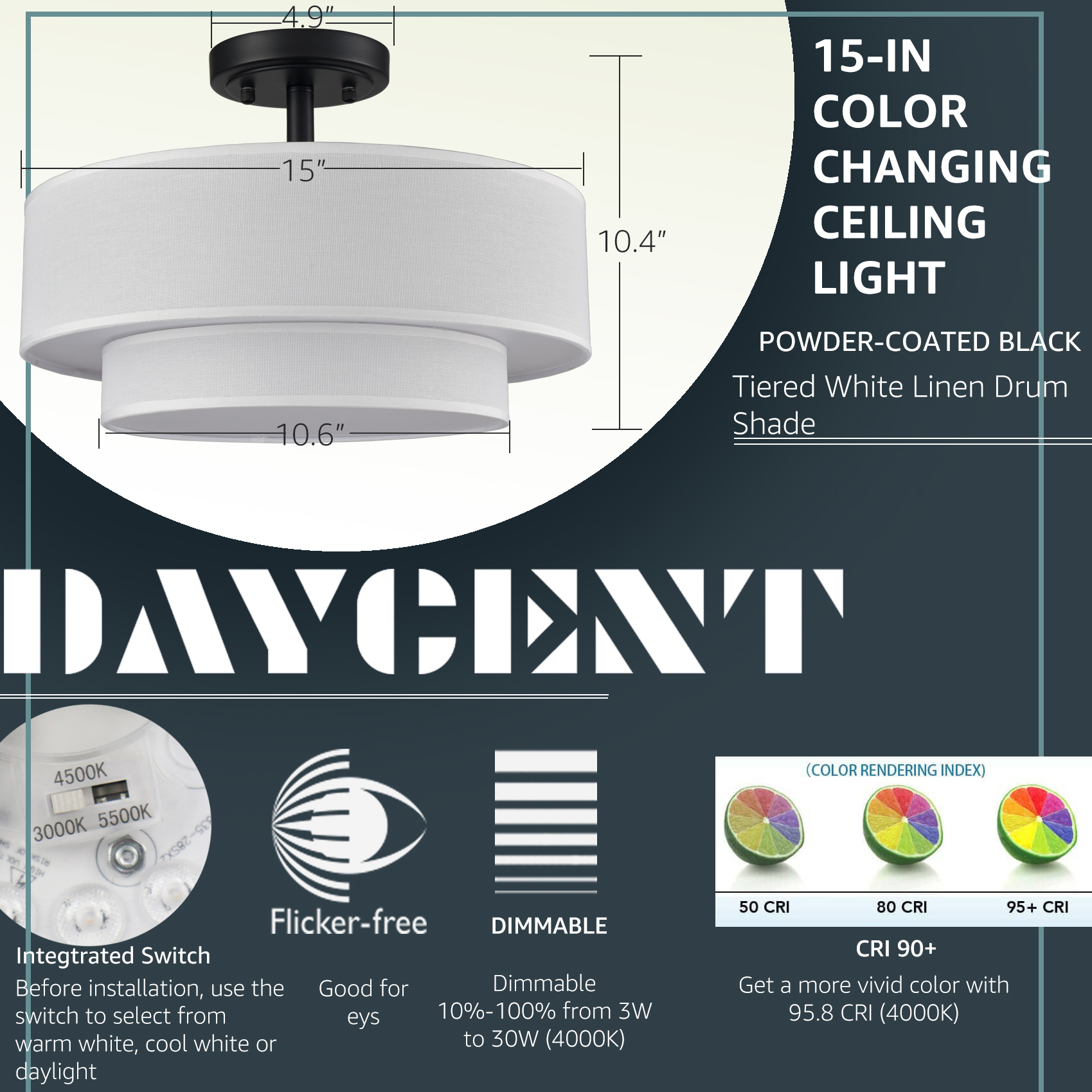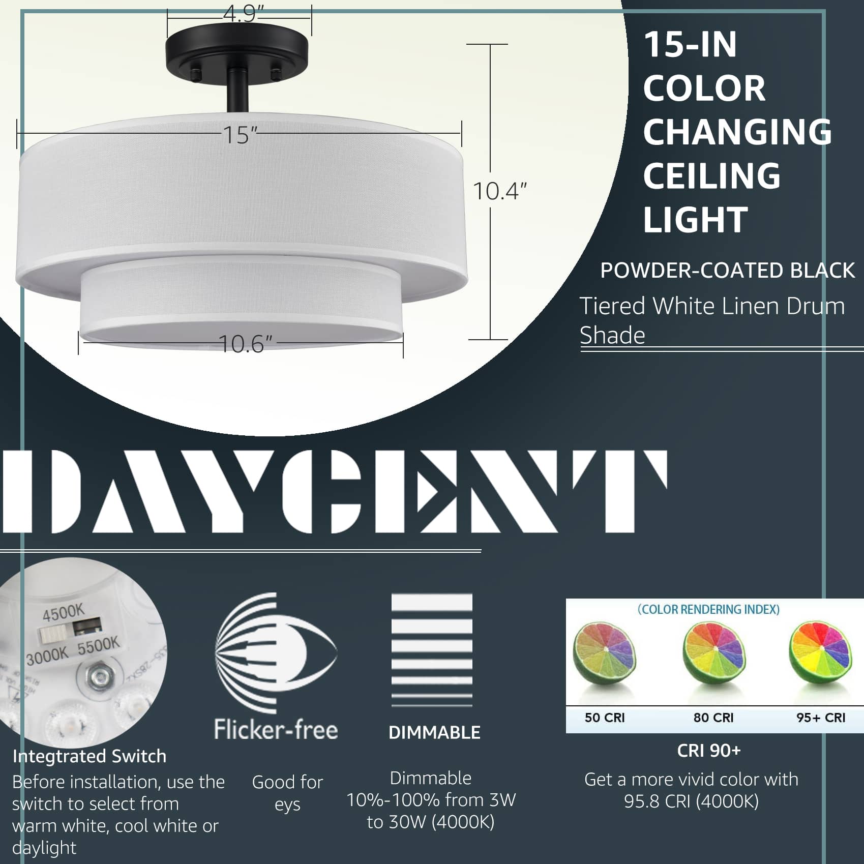 The LED ceiling lights’ canopy, lamp holder, and hanging rod sport a rustproof semigloss black finish, glamming up your interior with a dash of drama. It boasts double-layer white linen drum shades that deliver sleek, clean, and minimalistic elegance. The light pouring through the fabric lampshades is gently muted and fills the room without any glare. Featuring RA≧90 and 120V/60Hz, it emits flicker-free light, helping you avoid eyestrain. The dimming range is from 3W to 30W (10%-100%). Its color temperature is adjustable ranging from 3000K, 4500K, to 5500K.