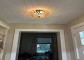 Purchased this semi-flush mount with amber glass to replace a traditional “boob light” in the laundry room. No biggie for us as we had already planned on re-painting, but we did find the ceiling to be a different color beneath the flush mount fixture. Just an FYI as it’s frustrating when simple upgrades turn into larger, more expensive projects than anticipated. HEAVY and very good quality. This room is quite dark as it faces north and the 3 lightbulbs give plenty of light. The amber color makes for a very warm and inviting atmosphere which I prefer to cool, lighting. Very pleased with our purchase and would recommend to others!