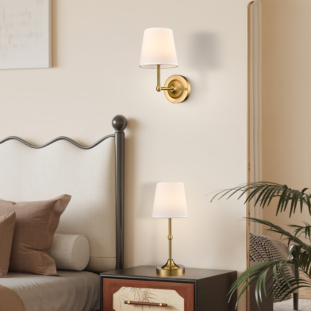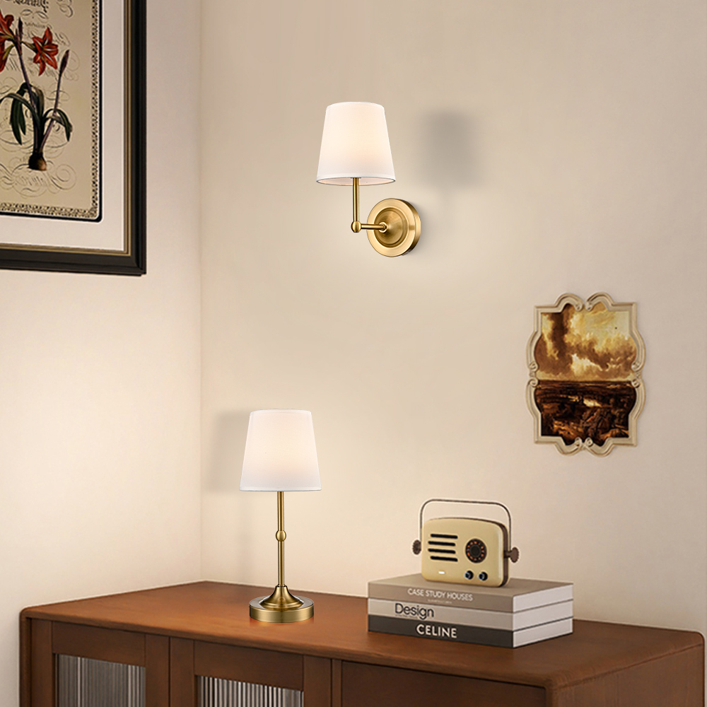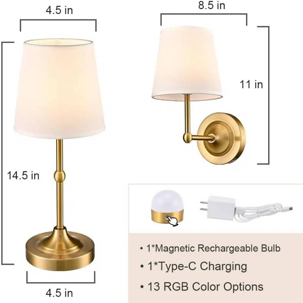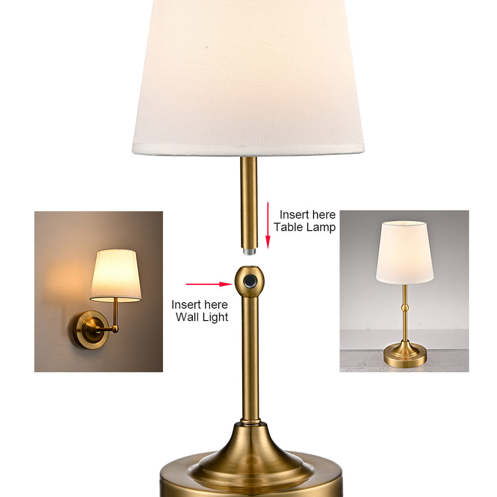 Boasting a shiny gold finish, the battery operated wall sconces elevate the decor with a bit of metallic pizzazz. Their fabric cone shades are held aloft and supported by sturdy detachable gold arms, lending a ton of texture and the right amount of style to your interior. Their gold finish contrasts with the fabric shades and adds alluring visual interest to the space. The light pouring through the white fabric lampshades is gently muted and fills the room without any glare. They can both be used as wall lights and table lamps.