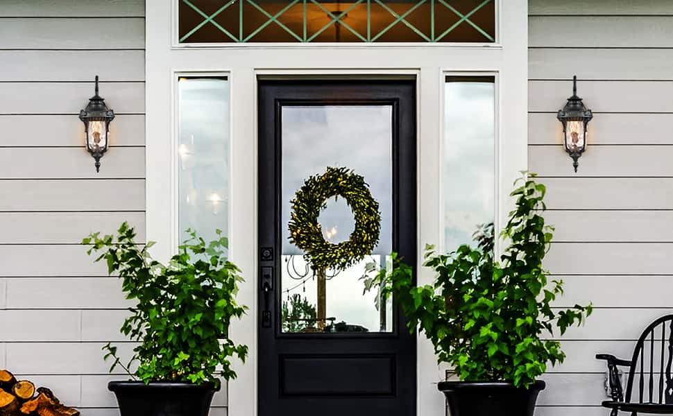 • The wall light fixture with a curved arm adds an exciting visual element to your outdoor space.