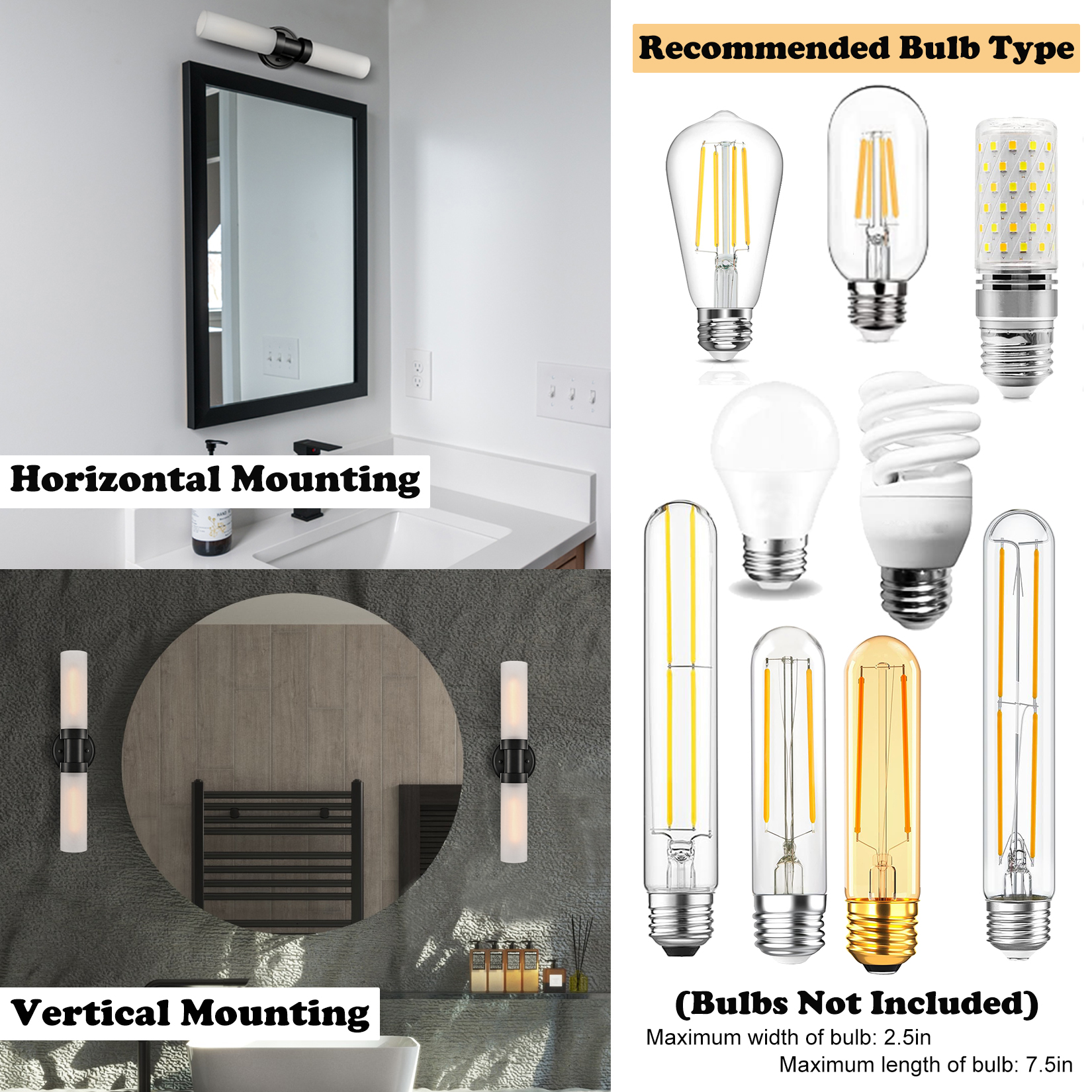 The modern black wall sconce comes with 2 E26-base sockets which are compatible with a variety of bulb types: LED, INCANDESCENT, and CFL.