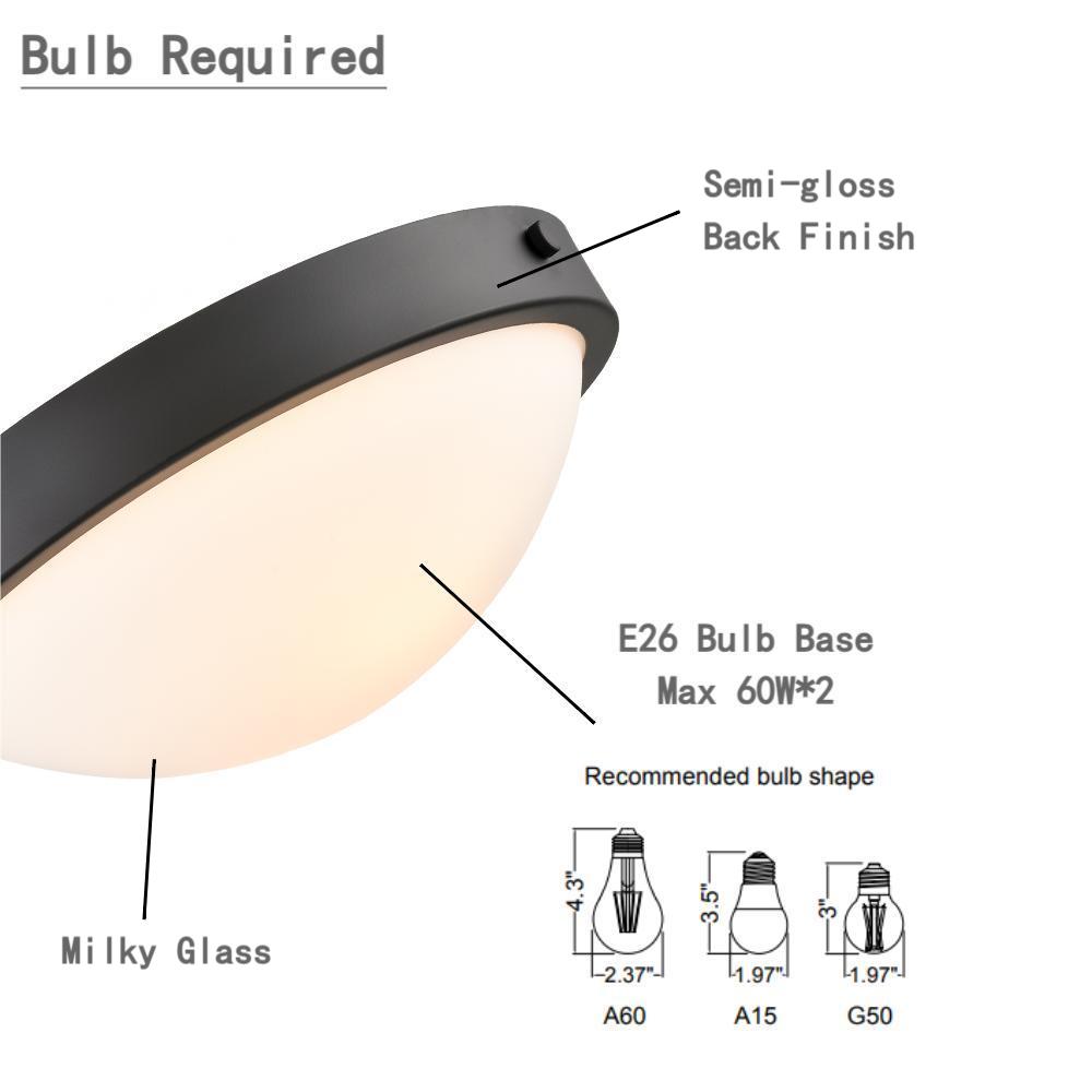 The flush ceiling light features 2 E26 base socket which is compatible with a variety of bulb types: LED, INCANDESCENT, CFL.