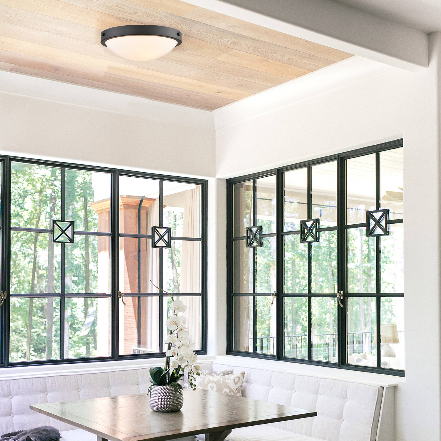 I really like the black flush mount ceiling light in my house. It adds a stylish touch with its black finish and milk glass shade, giving a modern farmhouse feel while creating a cozy, soft light. The fixture is easy to install and adds warmth to my kitchen. The design suits many decor styles.