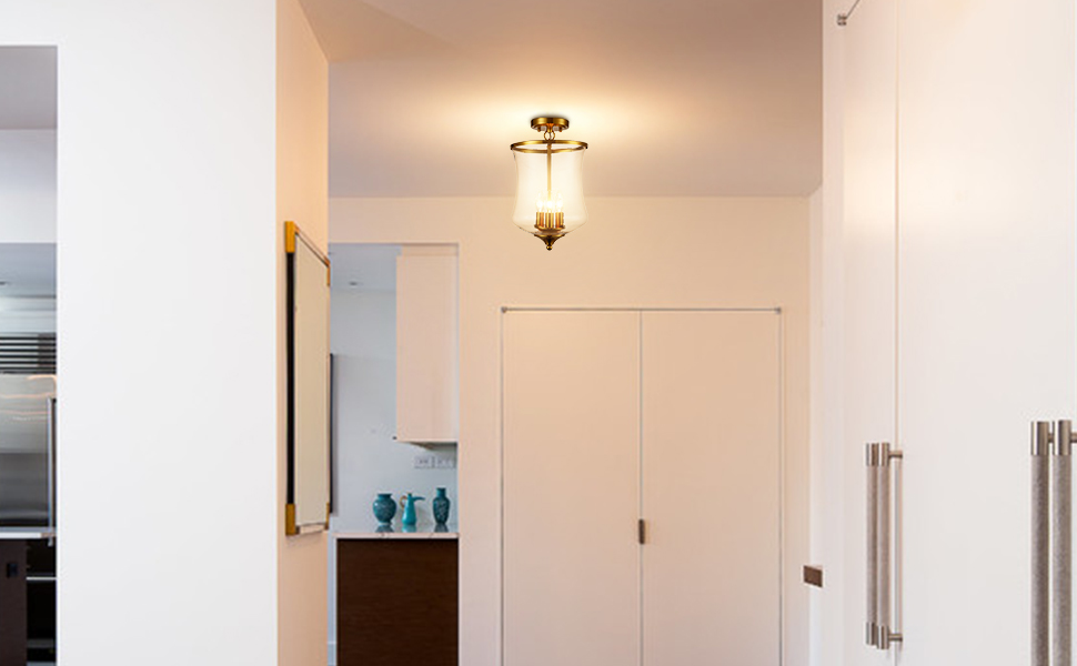 The semi flush mount ceiling light features 3*E12 base socket which is compatible with a variety of bulb types: LED, INCANDESCENT, CFL.