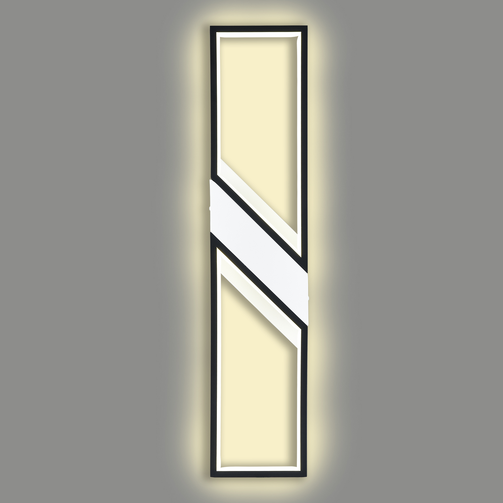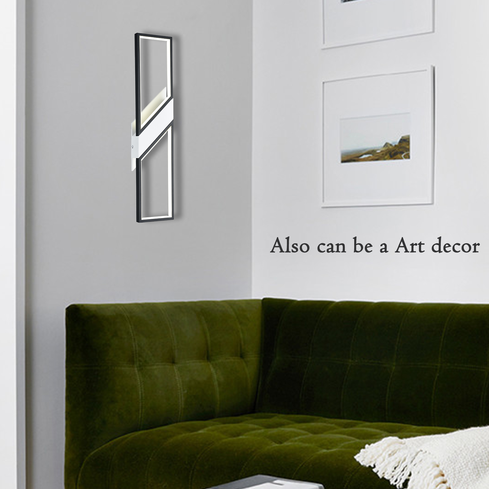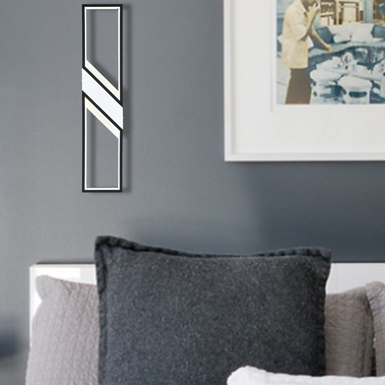 Flaunting a matte black finish, the black LED wall sconce adds a touch of modern sophistication to your interior. It shows off a simple but edgy design as an energy-efficient wall light. One rectangular frame is held aloft by a parallelogramic frame in the middle, presenting a minimalist yet whimsical look. It offers a surprising twist and a black-and-white classic color combo. A charming glow shines through the light, filling the space without any glare. It supplies a dash of drama and showcases the beauty of geometry. It can be installed horizontally or vertically.