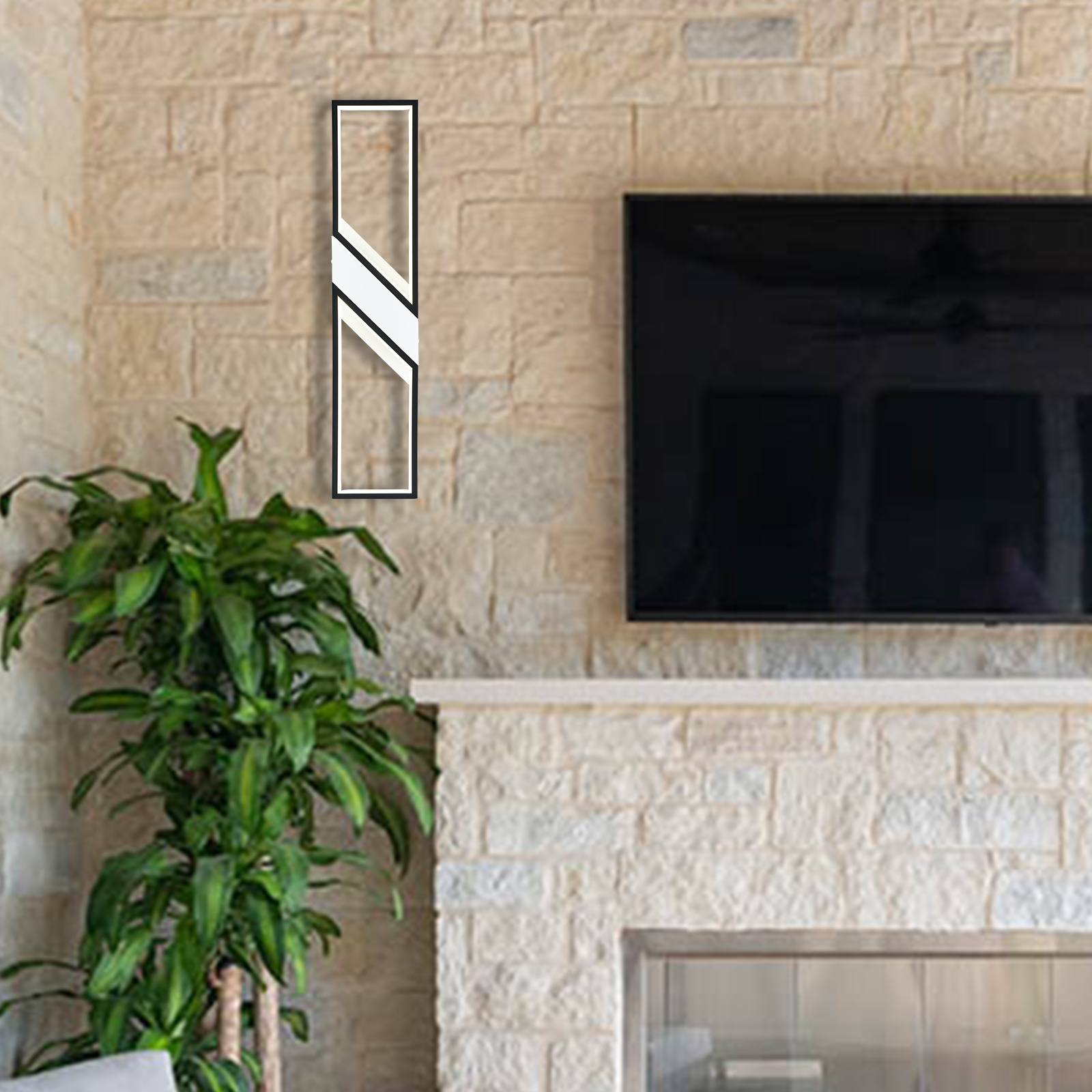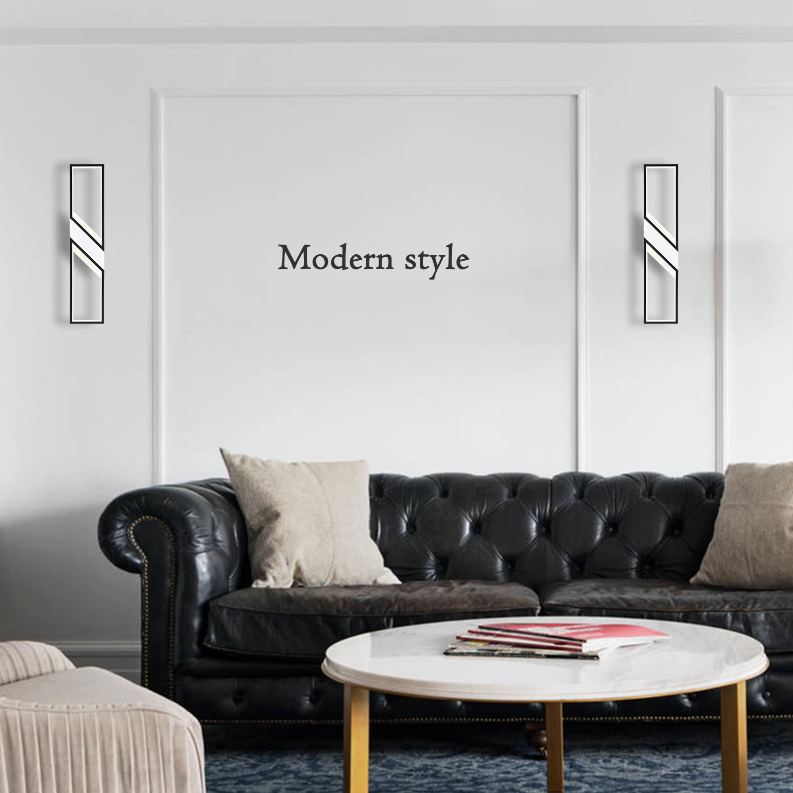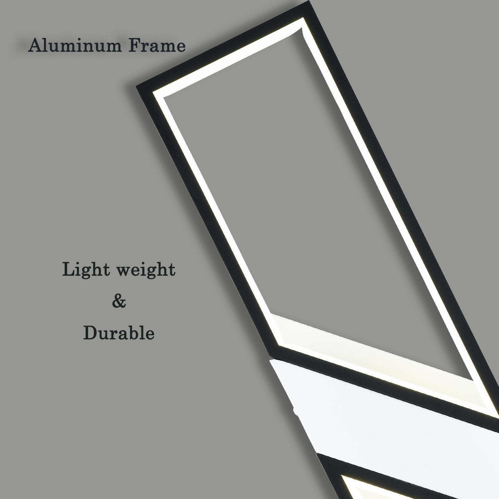 Flaunting a matte black finish, the black LED wall sconce adds a touch of modern sophistication to your interior. It shows off a simple but edgy design as an energy-efficient wall light. One rectangular frame is held aloft by a parallelogramic frame in the middle, presenting a minimalist yet whimsical look. It offers a surprising twist and a black-and-white classic color combo. A charming glow shines through the light, filling the space without any glare. It supplies a dash of drama and showcases the beauty of geometry. It can be installed horizontally or vertically.