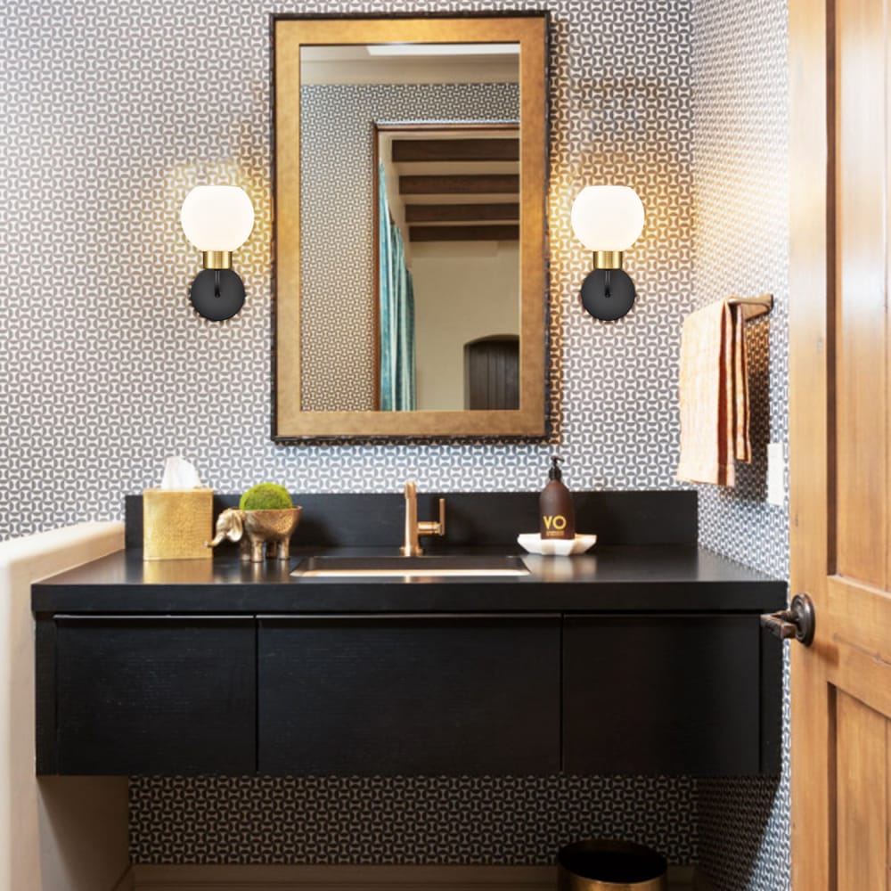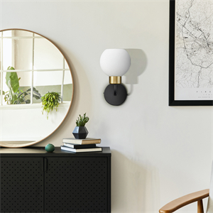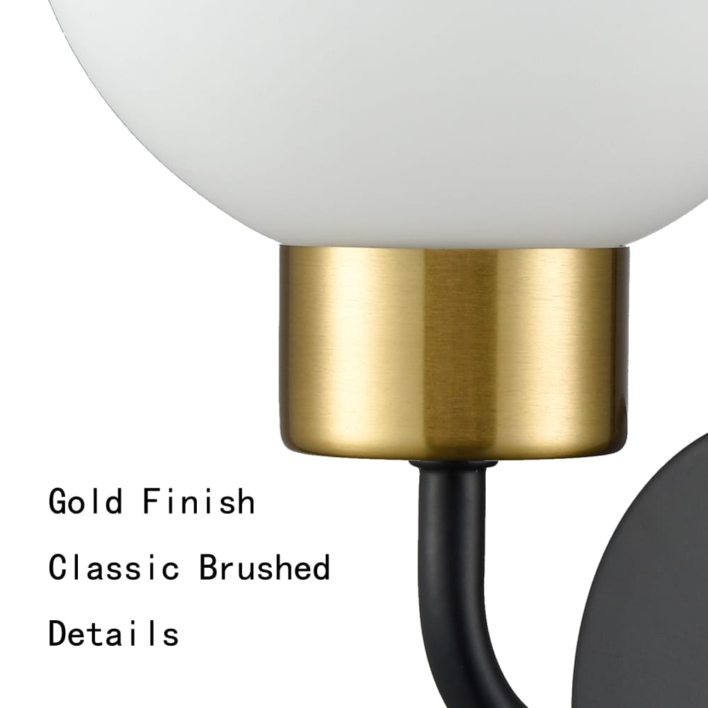 The mid century modern wall lights' canopies and arms are accented with a rustproof semigloss black finish, bringing a dash of drama to your interior. Their lamp holders boast a rustproof electrophoretic brass finish, highlighting your interior with a bit of bling. Crafted from impurity-free opaque opal glass, the wall sconces provide the perfect blend of mid-century classic and modern elements. A mix of finishes encompasses both shiny accent and classic elements, yet maintains an industrial edge. They can be new showpieces for your bathroom, bedroom, entryway, exterior, hallway, living room, and stairwell.