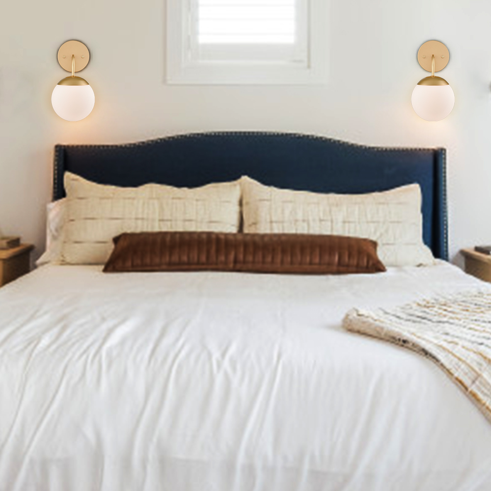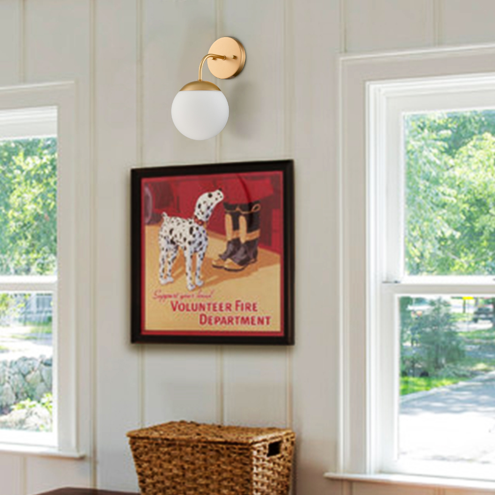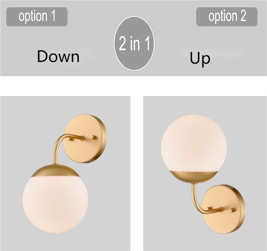 The mid century modern wall lights' canopies and arms are accented with a rustproof semigloss brass finish, bringing a dash of drama to your interior. Their lamp holders boast a rustproof electrophoretic black finish, highlighting your interior with a bit of bling. Crafted from impurity-free opaque opal glass, the wall sconces provide the perfect blend of mid-century classic and modern elements. A mix of finishes encompasses both shiny accent and classic elements, yet maintains an industrial edge. They can be new showpieces for your bathroom, bedroom, entryway, exterior, hallway, living room, and stairwell.