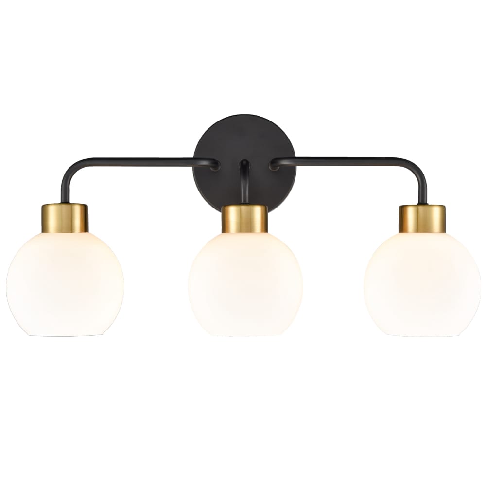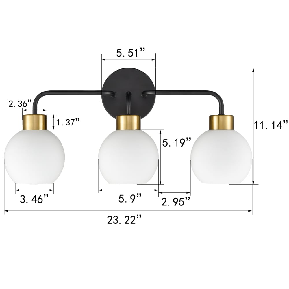 The black modern wall light's canopy and arms are accented with a rustproof semigloss black finish, bringing a dash of drama to your interior. Its lamp holders boast a rustproof electrophoretic brass finish, highlighting your interior with a bit of bling. Crafted from impurity-free opaque opal glass, it provides the perfect blend of mid-century classic and modern elements. A mix of finishes encompasses both shiny accent and classic elements, yet maintains an industrial edge. It can be new showpieces for your bathroom, bedroom, entryway, exterior, hallway, living room, and stairwell.