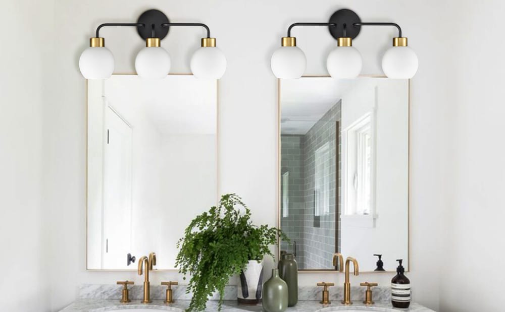 The black modern wall light's canopy and arms are accented with a rustproof semigloss black finish, bringing a dash of drama to your interior. Its lamp holders boast a rustproof electrophoretic brass finish, highlighting your interior with a bit of bling. Crafted from impurity-free opaque opal glass, it provides the perfect blend of mid-century classic and modern elements. A mix of finishes encompasses both shiny accent and classic elements, yet maintains an industrial edge. It can be new showpieces for your bathroom, bedroom, entryway, exterior, hallway, living room, and stairwell.