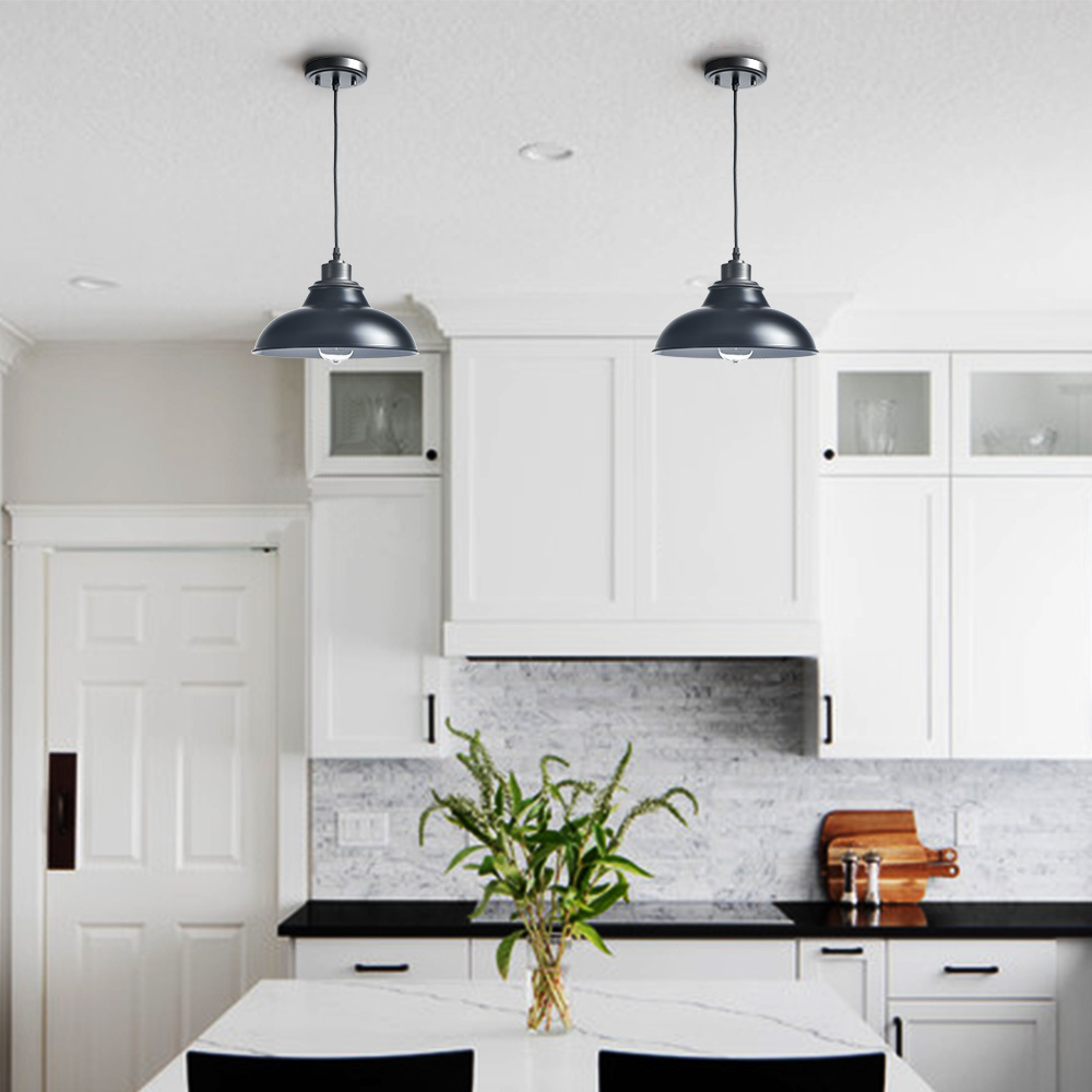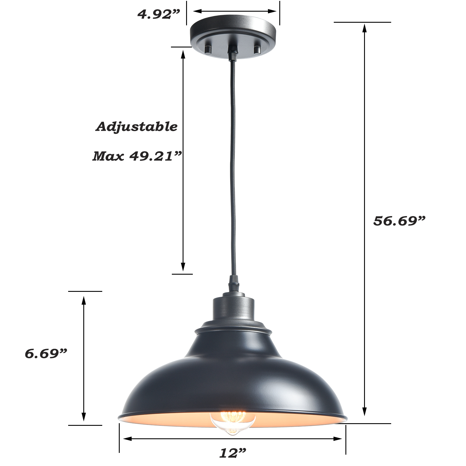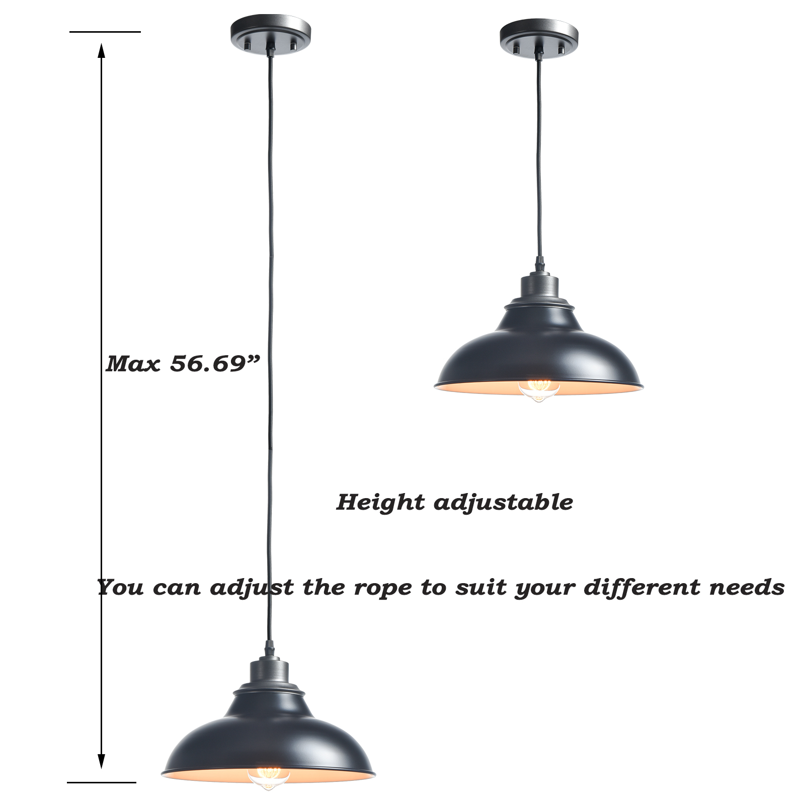 The black pendant light fixture’s canopy and lamp holder are coated in a dark gray finish while its dome shade flaunts a semigloss black finish. The dome shade boasts a white interior to maximize reflectivity. Its mix of finishes encompasses both a dash of drama and a touch of modernity, yet maintains an industrial edge. It sports a durable black finish and a dome shade to bring a bit of factory-inspired elements to your living space. Its dark gray finish offers a stark contrast to the black finish and adds alluring eye appeal to the interior. It comes with a 49.21-inch adjustable fabric cord.