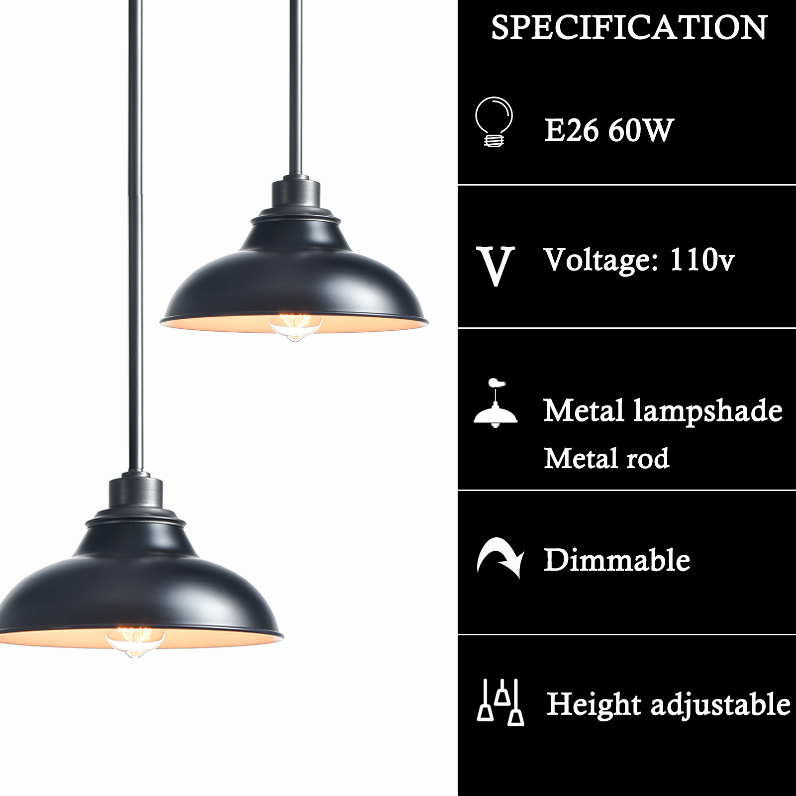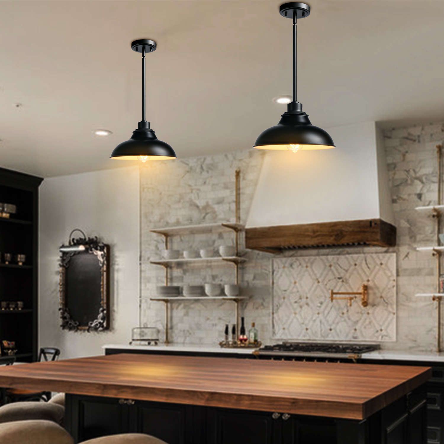Black Pendant Light Fixture Dome Kitchen Islands Hanging Light Metal Rod
