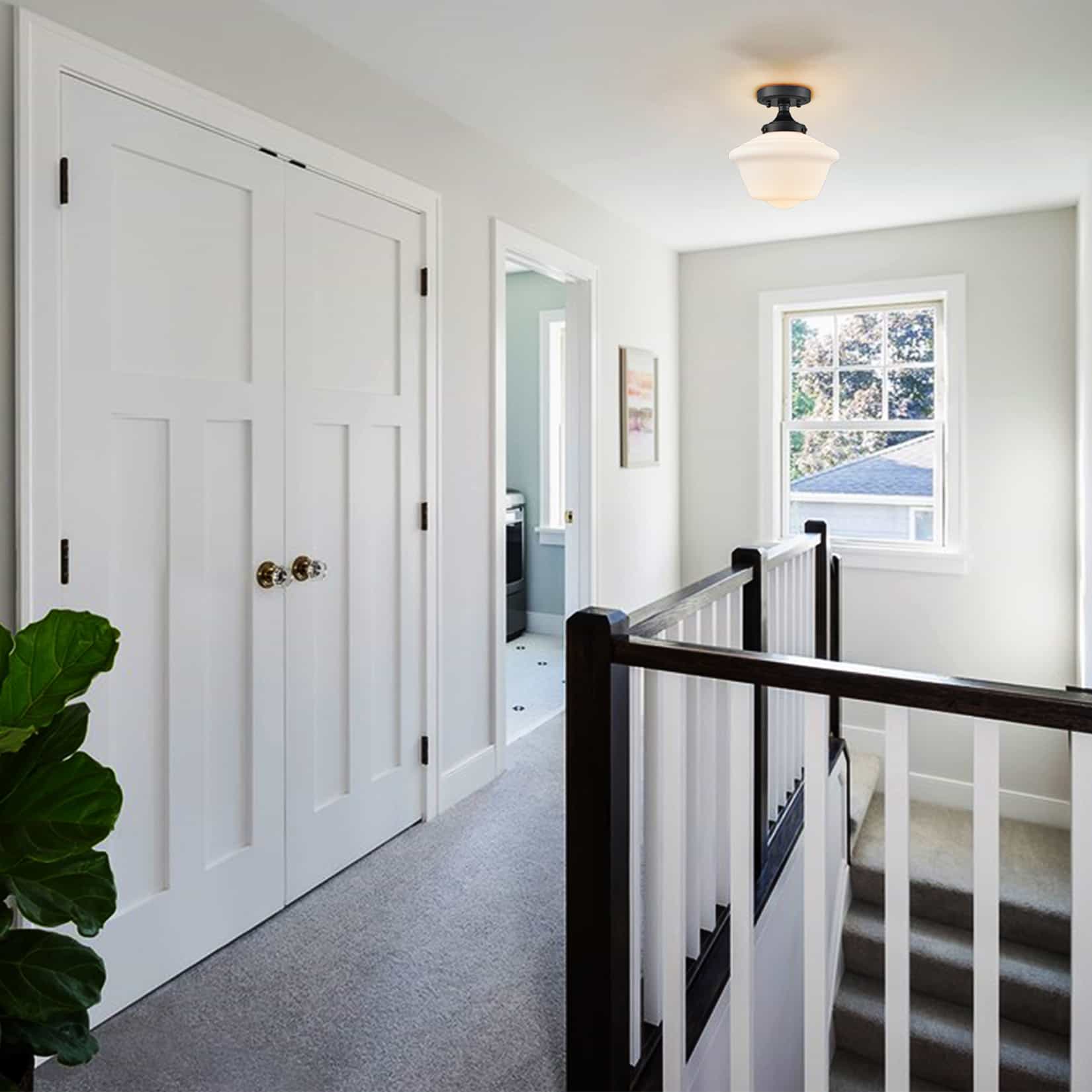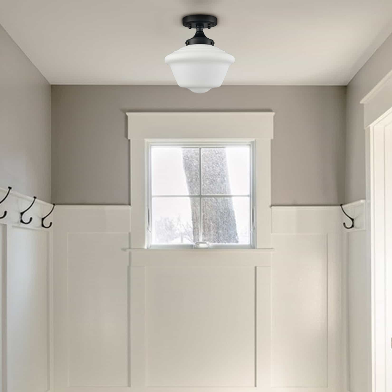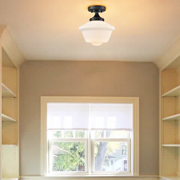 This ceiling light fixture has instantly improved the atmosphere of my living room. It has also added a touch of elegance that will stand the test of time and works well with the rest of my interior décor. Permit me to tell you about my true experience with this gorgeous ceiling light that has a semi-flush mount. The stunning contrast that is created when contemporary black is paired with a shade made of milk glass oozes elegance and allure. It is an excellent option for both modern and classic settings because of its uncluttered appearance and clean lines, and it can be easily integrated into any area thanks to its adaptability. This ceiling lamp displays a high level of workmanship in each and every one of its components. The black metal frame gives the impression of being strong and long-lasting, which ensures that it will withstand the test of time. The milk glass shade does a fantastic job of diffusing the light, which results in a warm and inviting glow that completely alters the ambiance of the space the moment it is turned on. The installation was a snap, and the directions that were provided were crystal clear and simple to understand. In a matter of minutes, I was able to attach the light fixture in the form of a schoolhouse to the ceiling of my living room, and it was immediately prepared to provide elegant illumination. The form of the semi-flush mount makes it an excellent choice for spaces that have lower ceilings since it offers sufficient clearance while still functioning as a focal point in the space. This light fixture produces light that is at the ideal level of both bright and warm, and it does it perfectly. Because it generates a warm and welcoming ambiance, it is an excellent option for areas such as bedrooms, corridors, kitchens, foyers, and living rooms. In addition, it may also be used to create a warm and inviting ambiance in dining rooms. After I had it put in my living room, it quickly became the focal point of the area, and it received accolades from each and every one of my visitors.