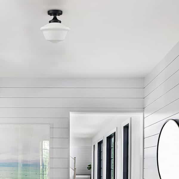 The schoolhouse ceiling light fixture’s canopy and lamp holder boast a semi-gloss black finish, pepping up your space with an industrial touch. Crafted of impurity-free hand-blown milk glass, its schoolhouse-inspired lampshade looks like a special bell shade with soft curves. Being a beautifully-detailed glasswork, it generates an understated look that will impress.