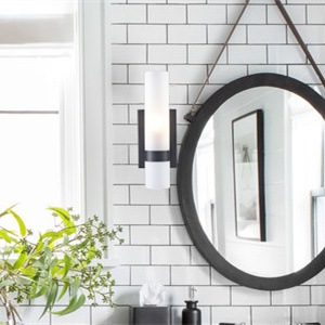 The black vanity light bathroom sconce’s canopy, candelabra-inspired lamp holder, and the the metal ring securing the lampshade show off a rustproof semigloss black finish, providing a strong visual presence to your interior. It flaunts an elongated cylinder shade crafted from impurity-free frosted glass. Its glass shade is designed to house a candelabra-inspired socket to complete the aesthetic. The glass shade is held aloft by a black metal frame, bringing an unrivaled level of sophistication. Its cylinder shade contrasts the black finish and adds alluring visual interest to the living area.