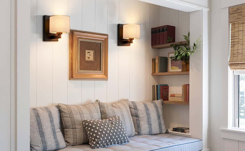 The fabric lampshade of wall lamp diffuses the light in all directions, the light is soft and evenly distributed, creating a warm atmosphere for your space. With a standard E26 bulb base socket, maximum 40 watts, the wall sconce is compatible with many types of bulbs, such as LED, Incandescent, CFL, and Edison bulbs.