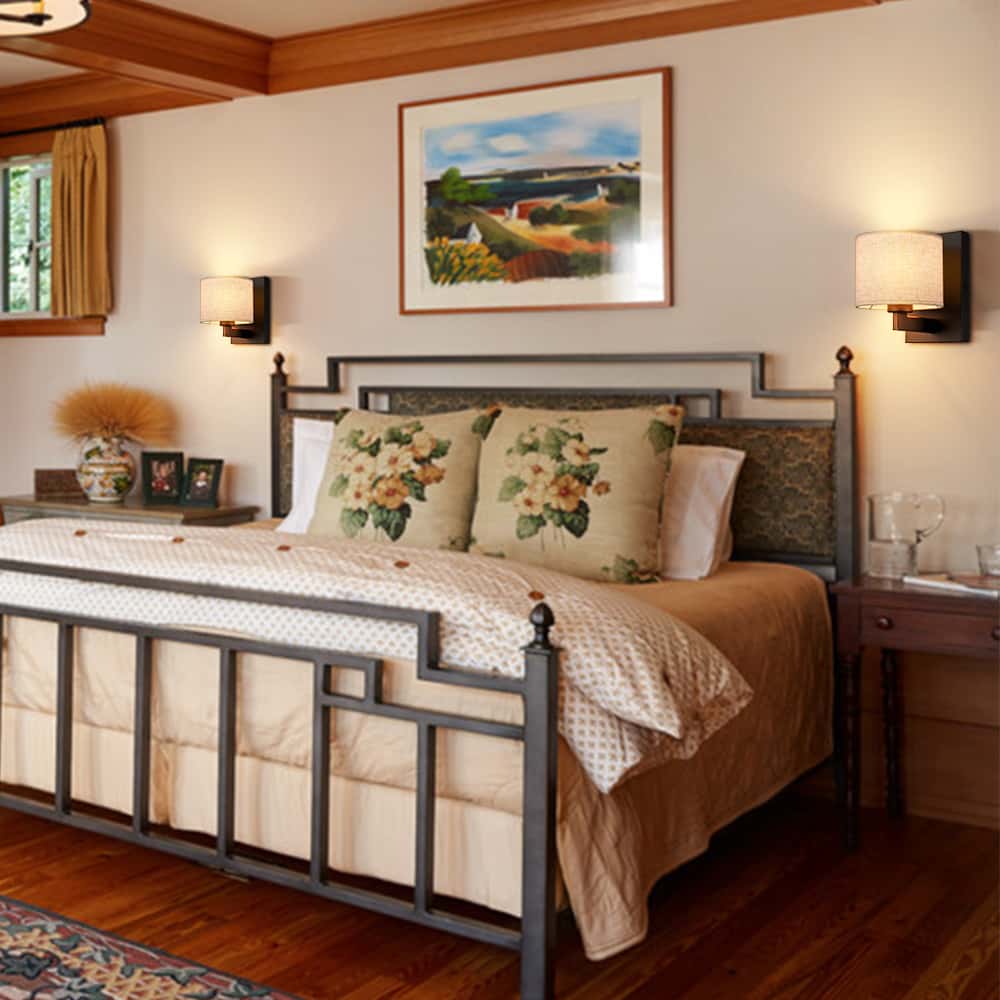 Black Wall Sconce Set of 2 Modern Fabric Shade Wall Lamps Bedroom Black Wall Sconce Set of 2 Modern Fabric Shade Wall Lamps Bedroom